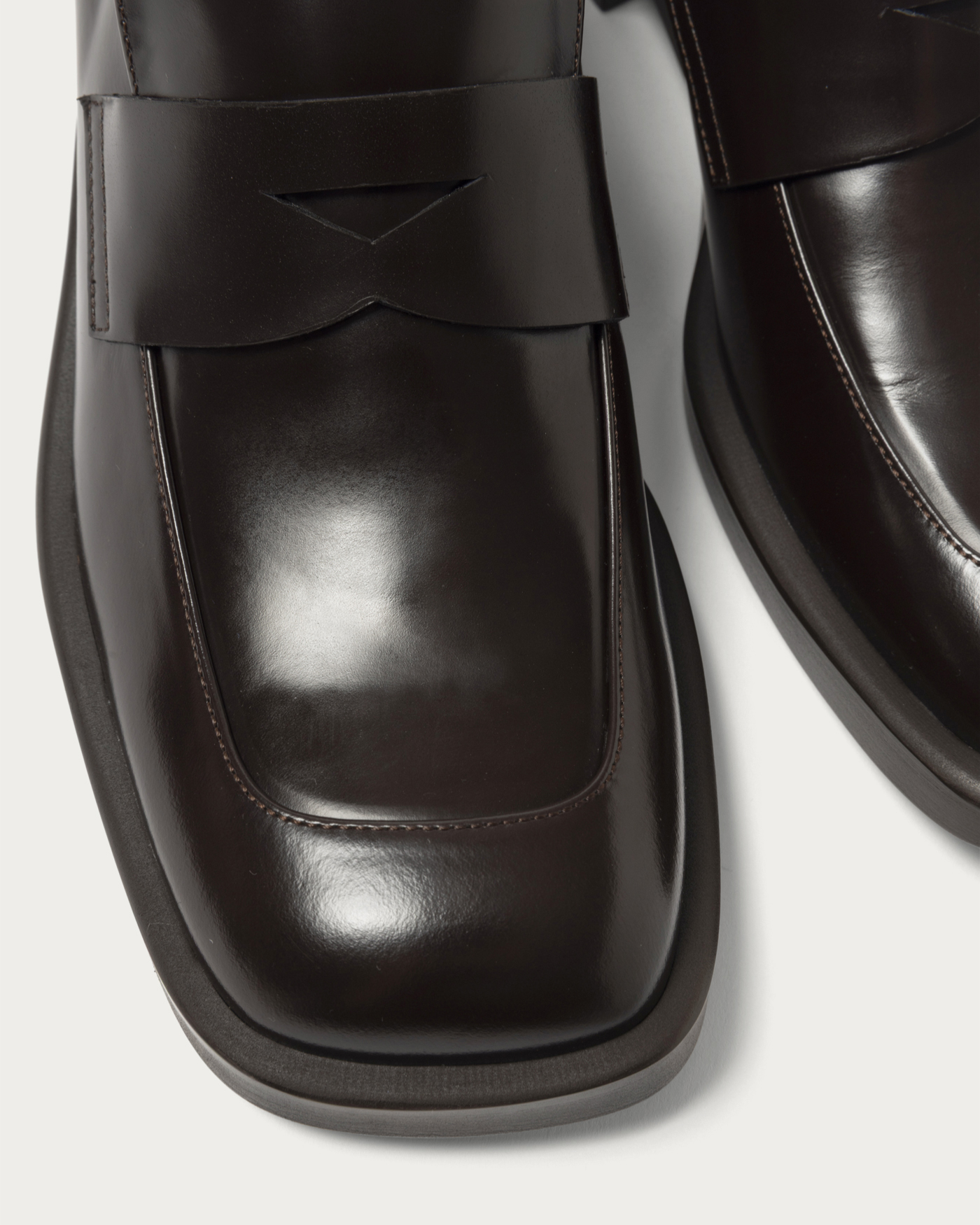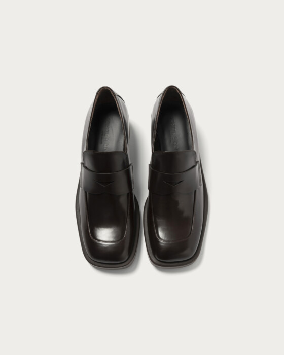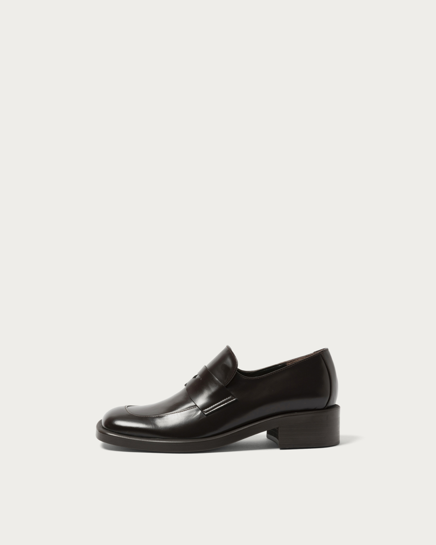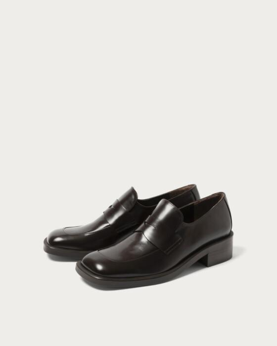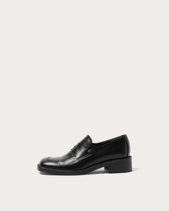 ほんのりオブリークなラインを効かせたワイドスクエアトウに、丸みを帯びた押縁が程よい柔らかさを添えるモードな一足。エッジを滑らかに仕上げたフォルムと上品な艶感が、足元に静かな存在感を与えます。ヒールアップでスタイル全体を引き締めつつ、隠しゴム入りの深めデザインで着脱もスムーズ。ショートボトムやジャケットとの春のモードスタイルにおすすめです。
