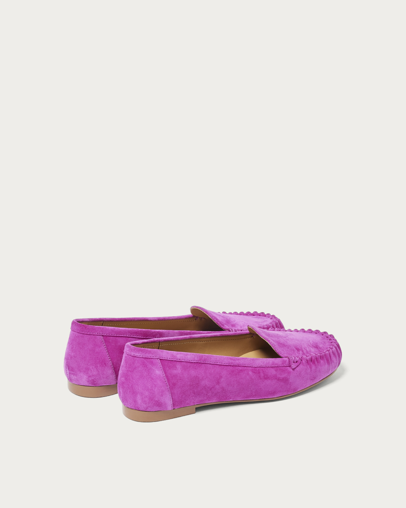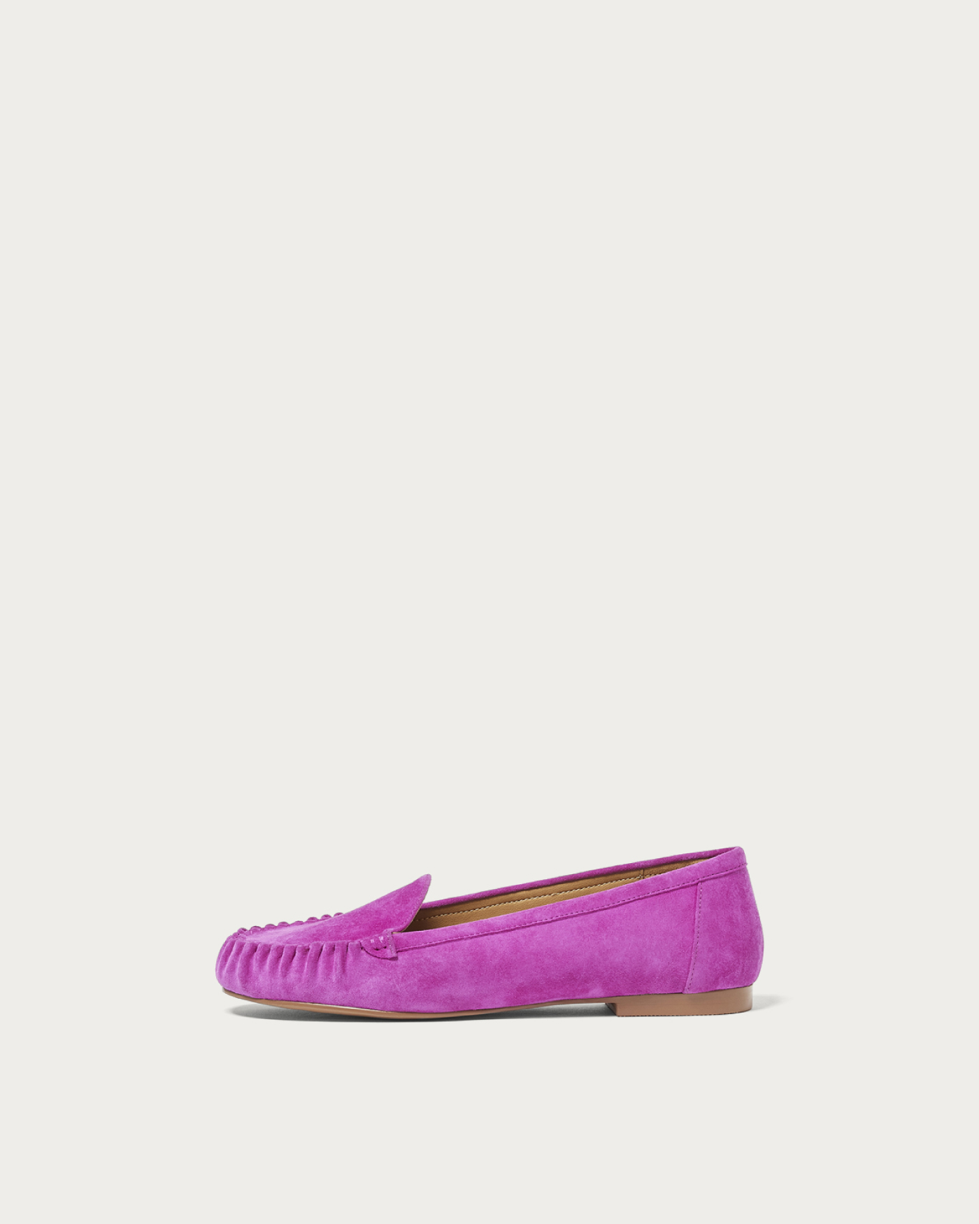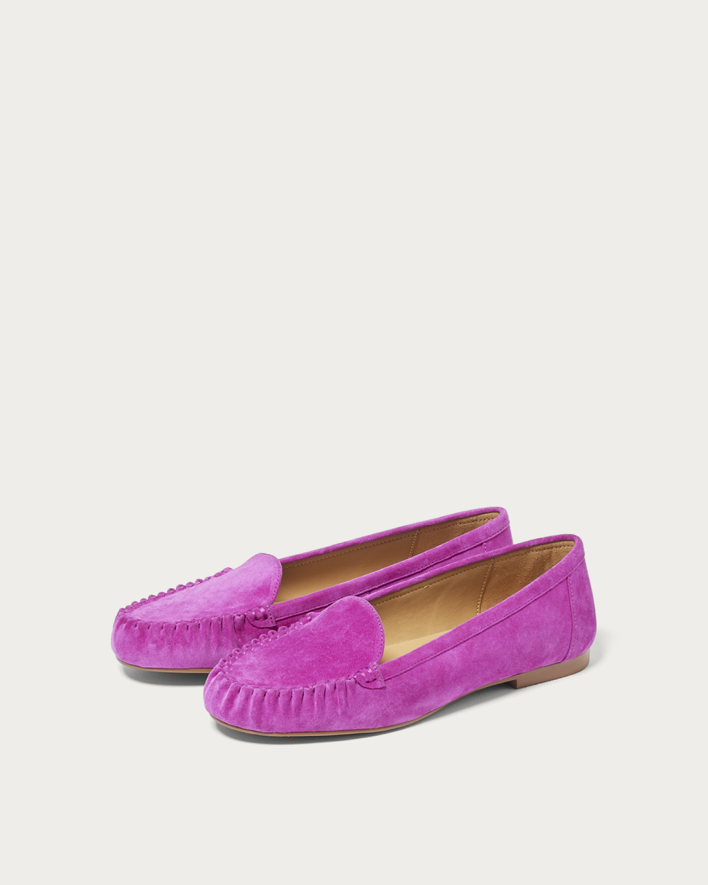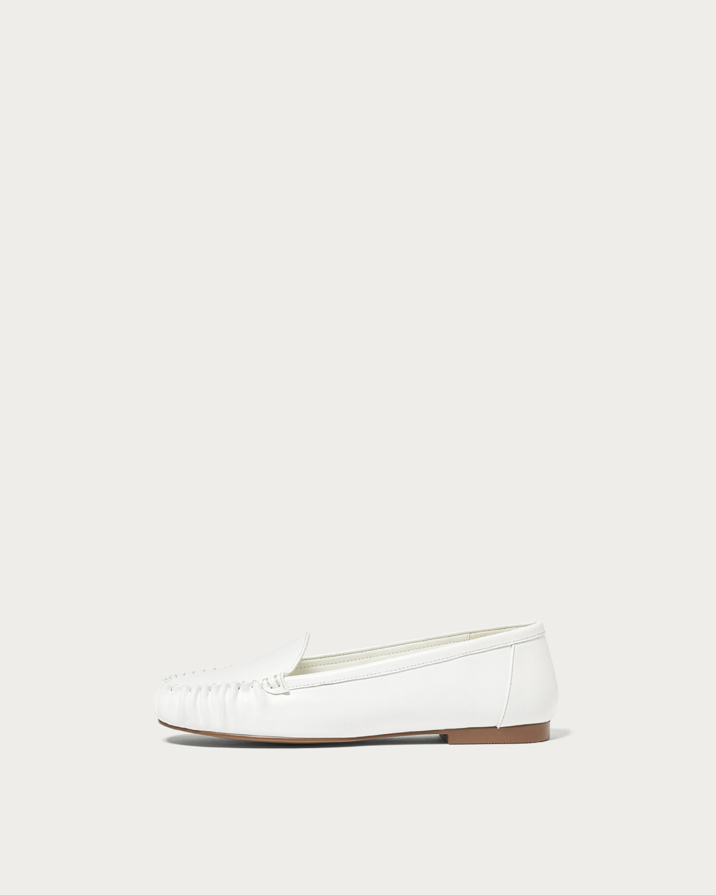 丁寧な手縫いで仕上げたモカシューズは、シンプルな中にも立体的なタックが映えるデザイン。15mmのフラットヒールで安定感があり、返りの良いソールで春のお出かけも軽やかにサポート。シャツやライトアウターとの相性も良く、春のマニッシュコーデに柔らかさをひとさじ加える一足。