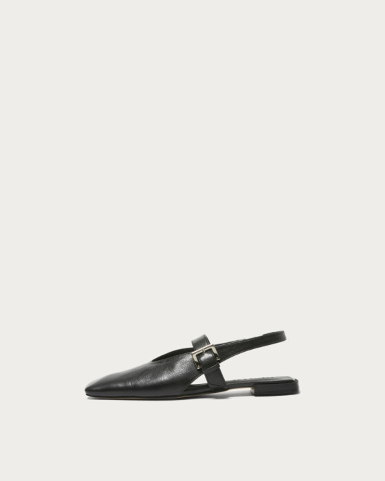 ミニマルなバックベルトデザインに、甲深のセンターラインと絶妙な幅のベルトが映えるモダンな一足。袋縫いのトップラインがやわらかなニュアンスを加え、シンプルなシルエットに洗練されたムードを漂わせます。10mmのヒールで、足元に品のある抜け感をプラス。今季注目のレースアイテムとも好相性で、甘さを程よく引き締めてくれます。