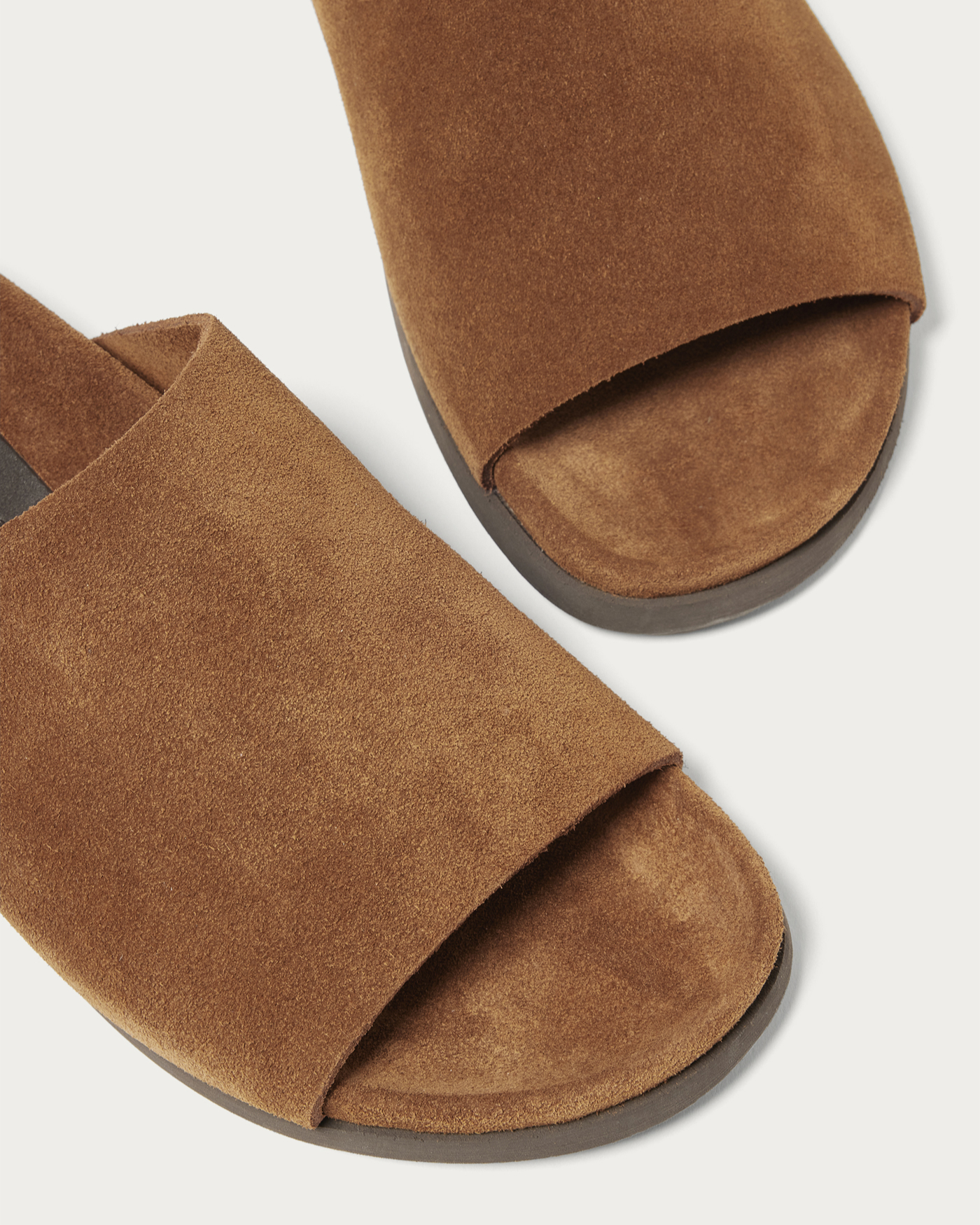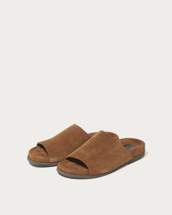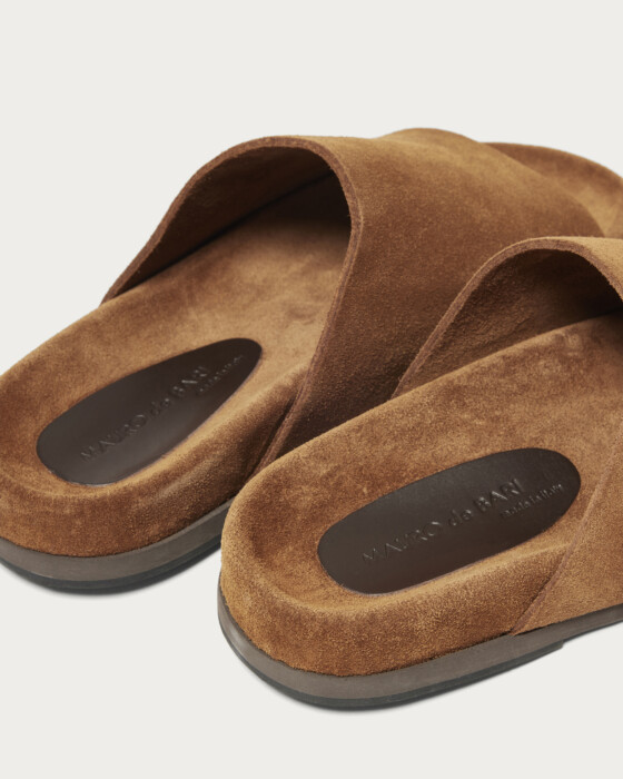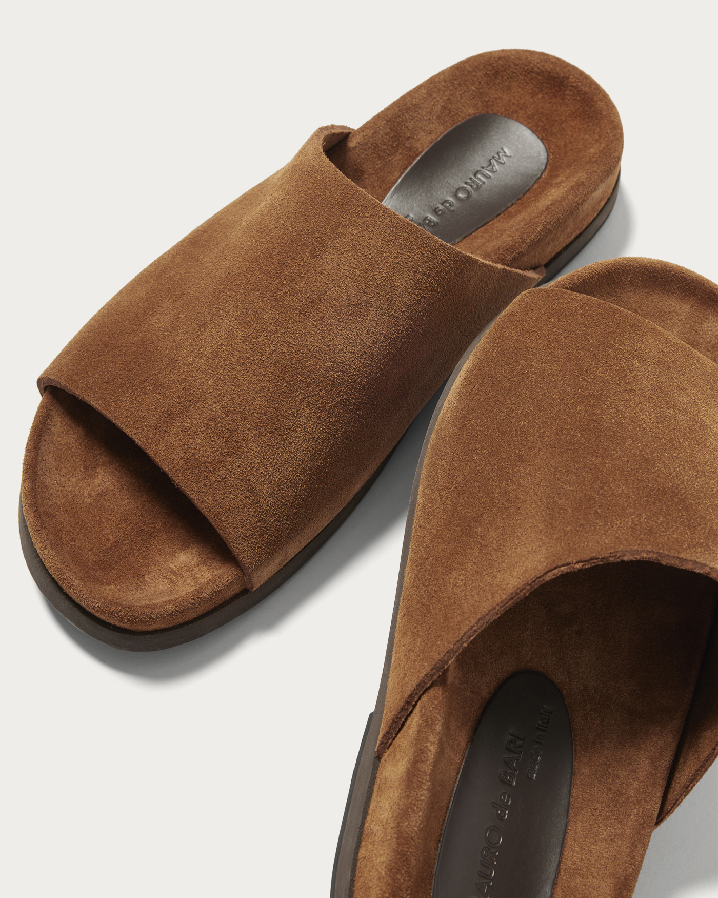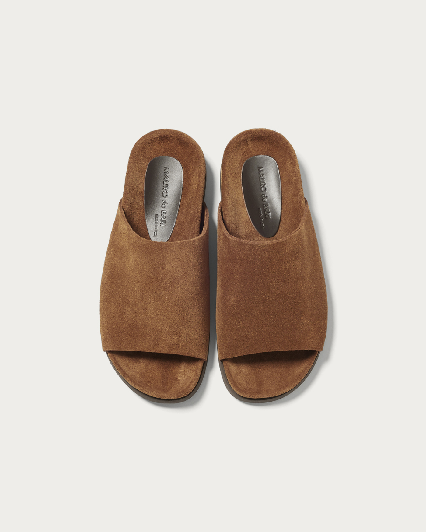 こだわりの仕上げを施した美しいレザーを特徴に持つ〈マウロ デ バーリ〉のサンダル。今シーズンは、そんな革の魅力が最大限に引き立つシンプルなスライドタイプをオーダー。2026年春夏シーズンに日本で同モデルが手に入るのは〈オデット エ オディール〉だけ。