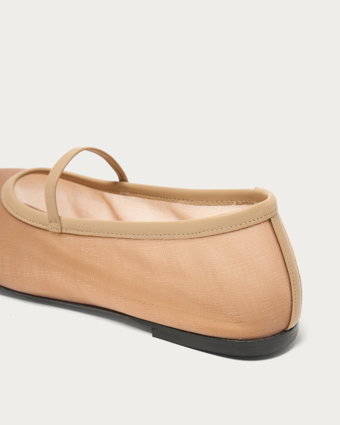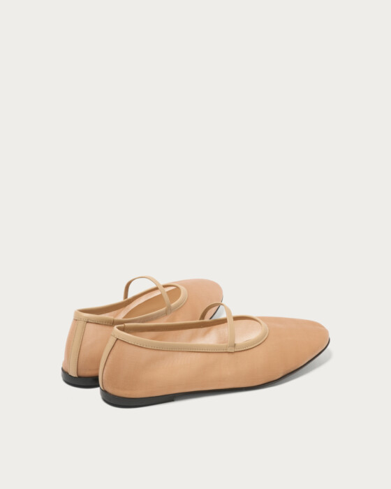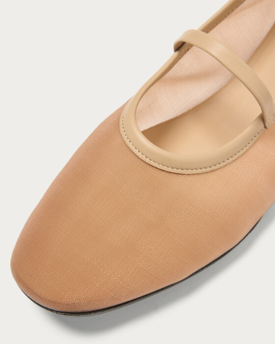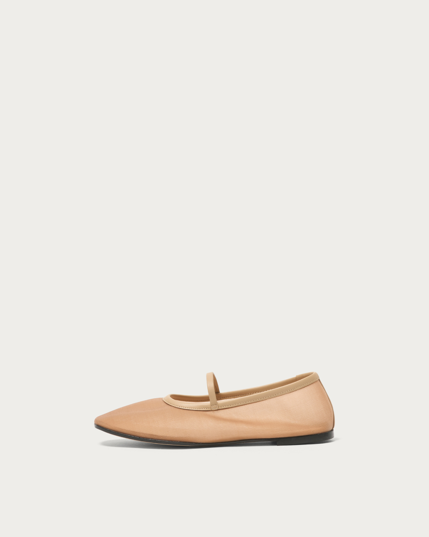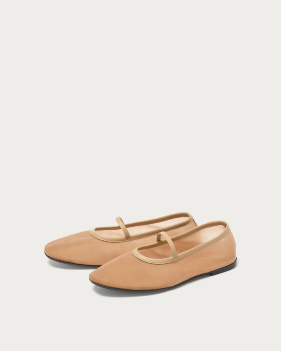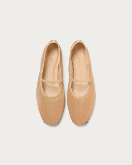 ラウンドトゥのシアー素材に細ベルトをあしらった、軽やかな印象のフラットシューズ。インラインにはないチュールカラーを選定し、オデットエオディール別注として仕上げました。PELLICOのDNAを受け継ぐラインならではの、素材へのこだわりと品のあるモダンさが魅力。今のスタイリングに自然と馴染む一足です。
