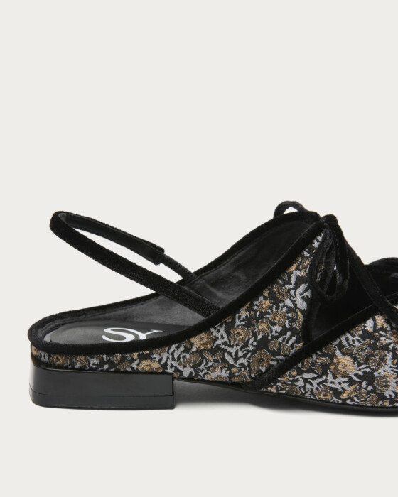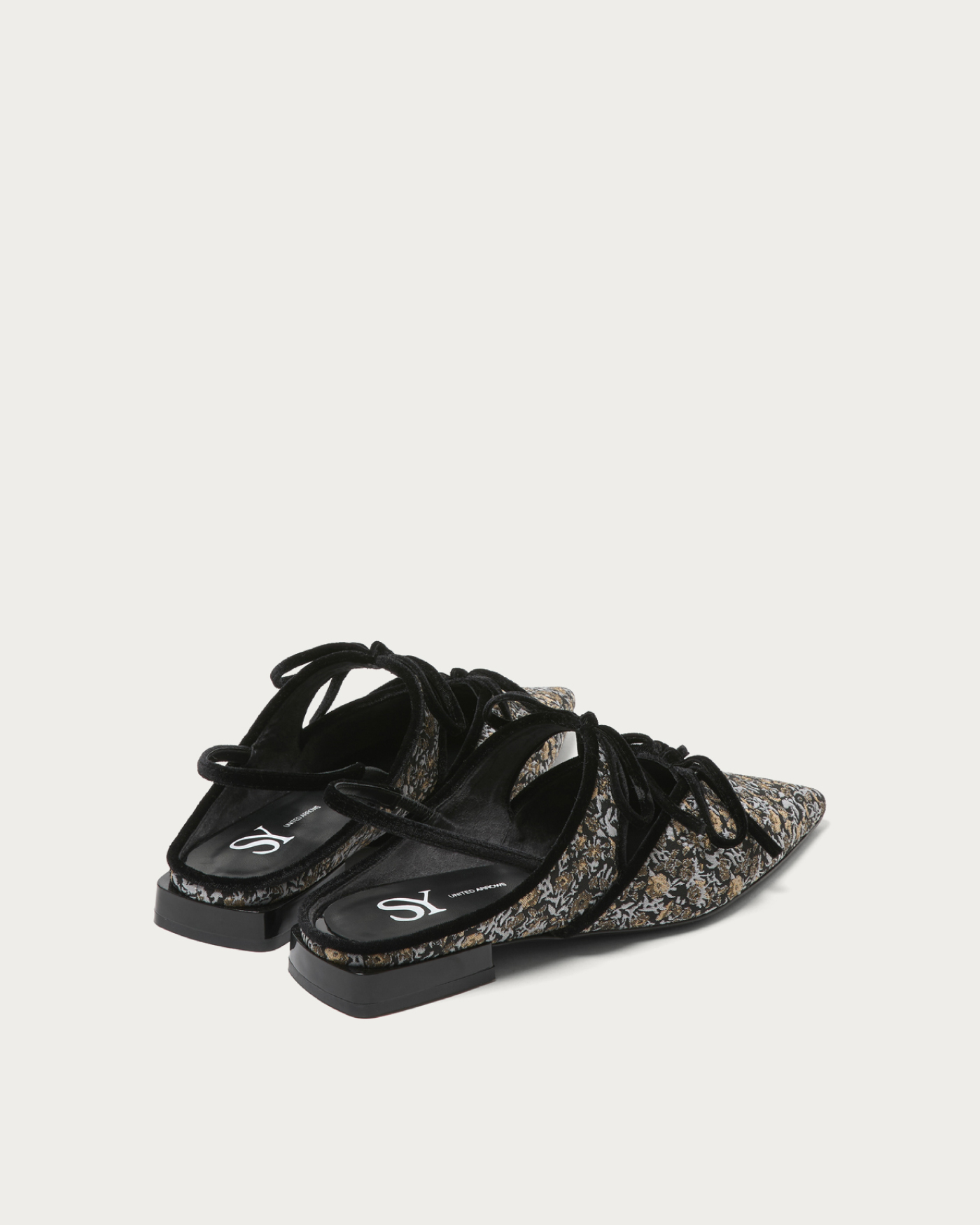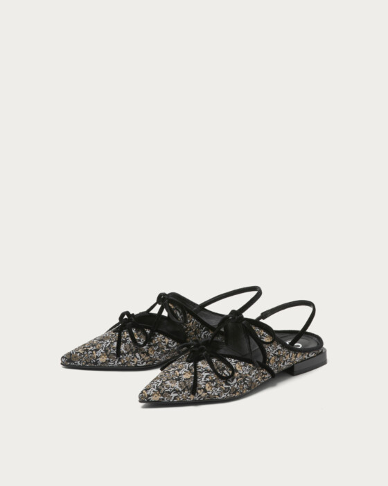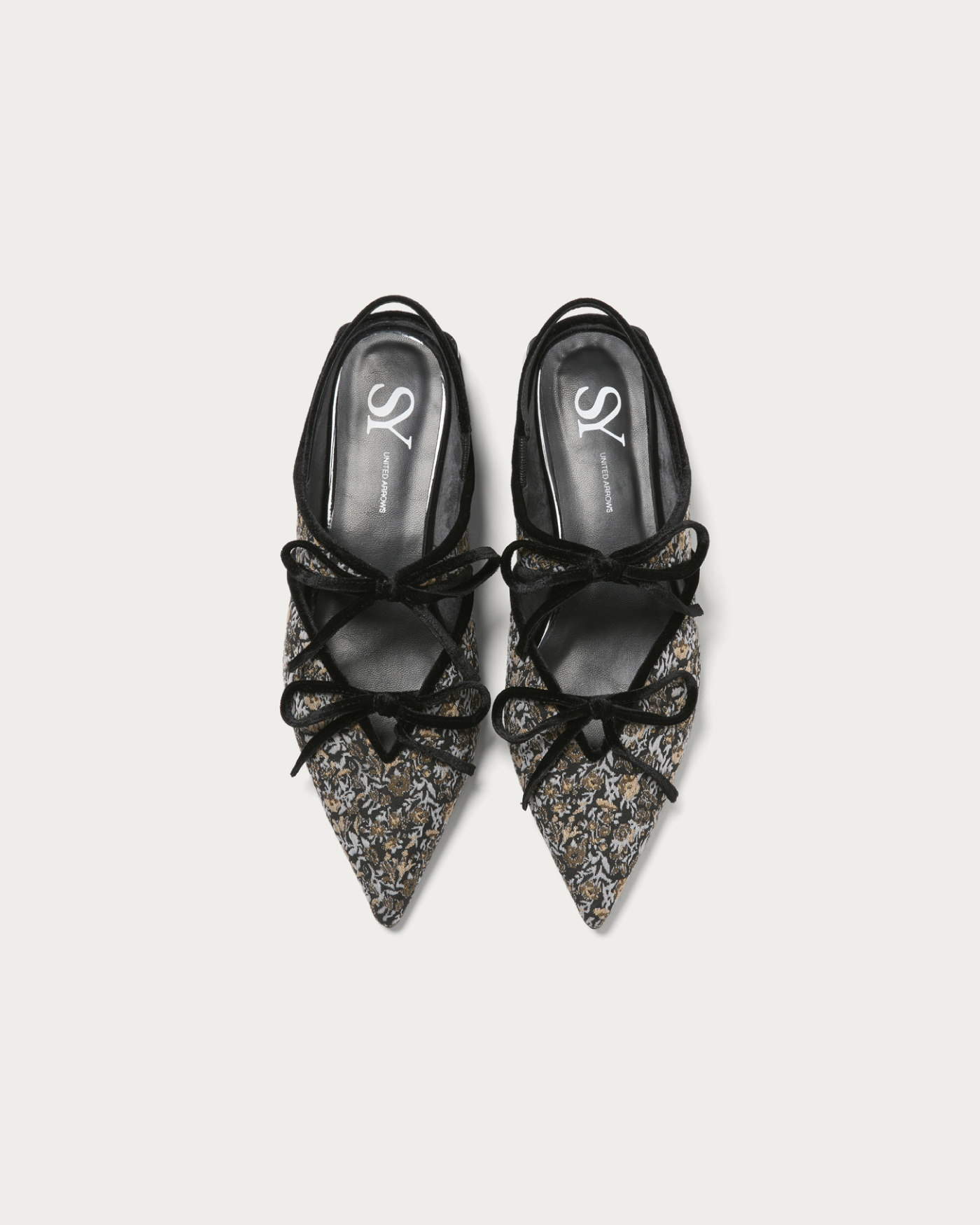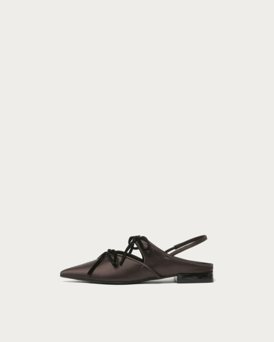 クラシカルなムード漂う、細リボンを2本あしらったフラットシューズ。ベルベット素材のリボンがさりげなく甘さをプラスし、足元にニュアンスを与えます。素足でスカートに合わせて抜け感を演出するのはもちろん、カラーソックスで遊び心を効かせたスタイリングもおすすめ。大人っぽさと可愛さを両立した一足です。