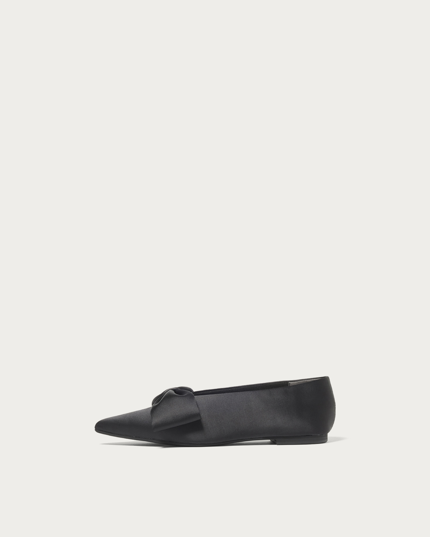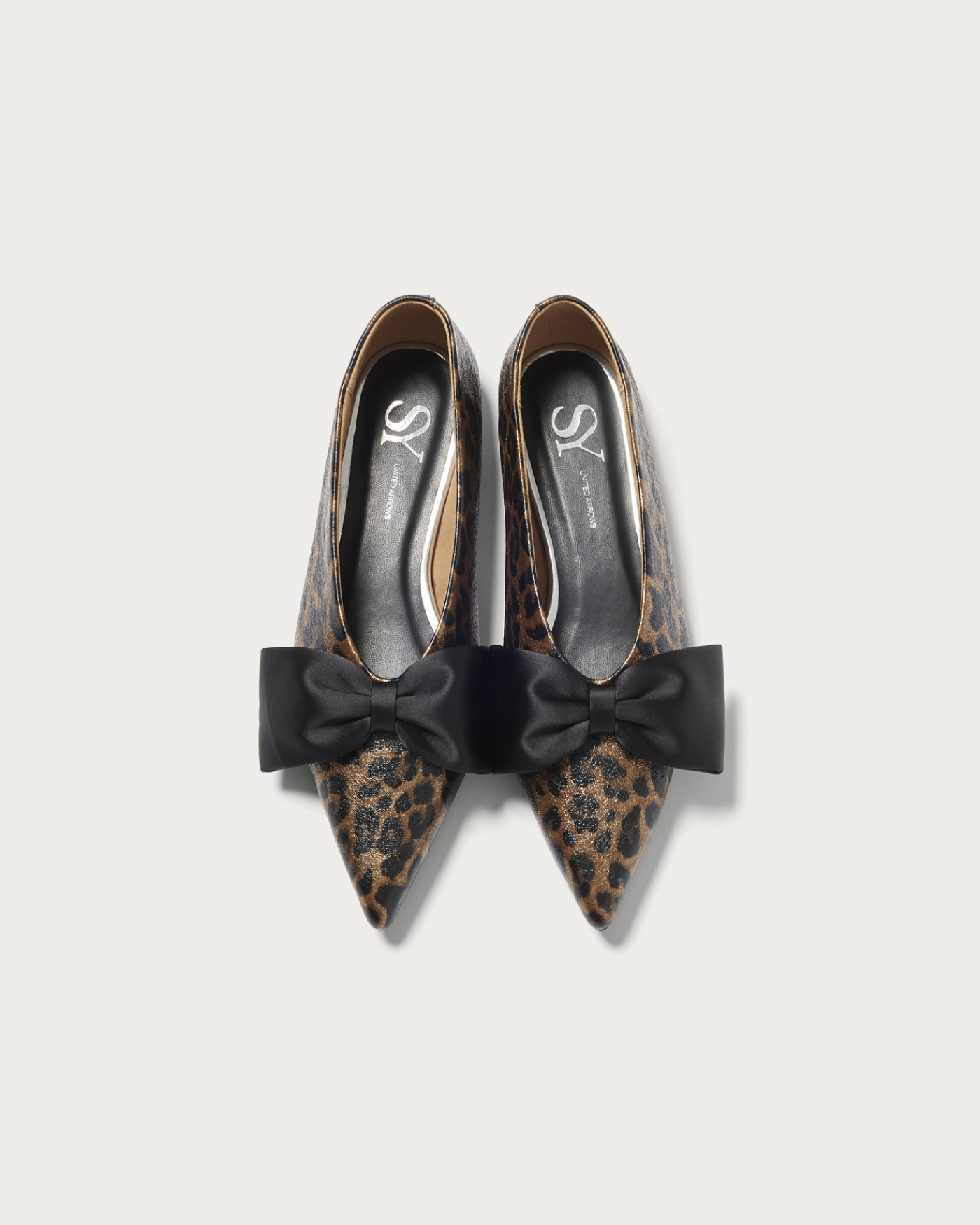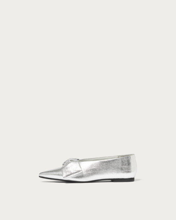 大ぶりリボンが目を引くフラットシューズは、深めのカットで甘さを抑えたモードな仕上がり。柔らかなアッパー素材による快適な履き心地も嬉しいポイントです。レースタイツでバレエコアに、スポーツソックスでストリート感をプラスするなど、スタイリング次第で印象を自在にチェンジできる一足です。