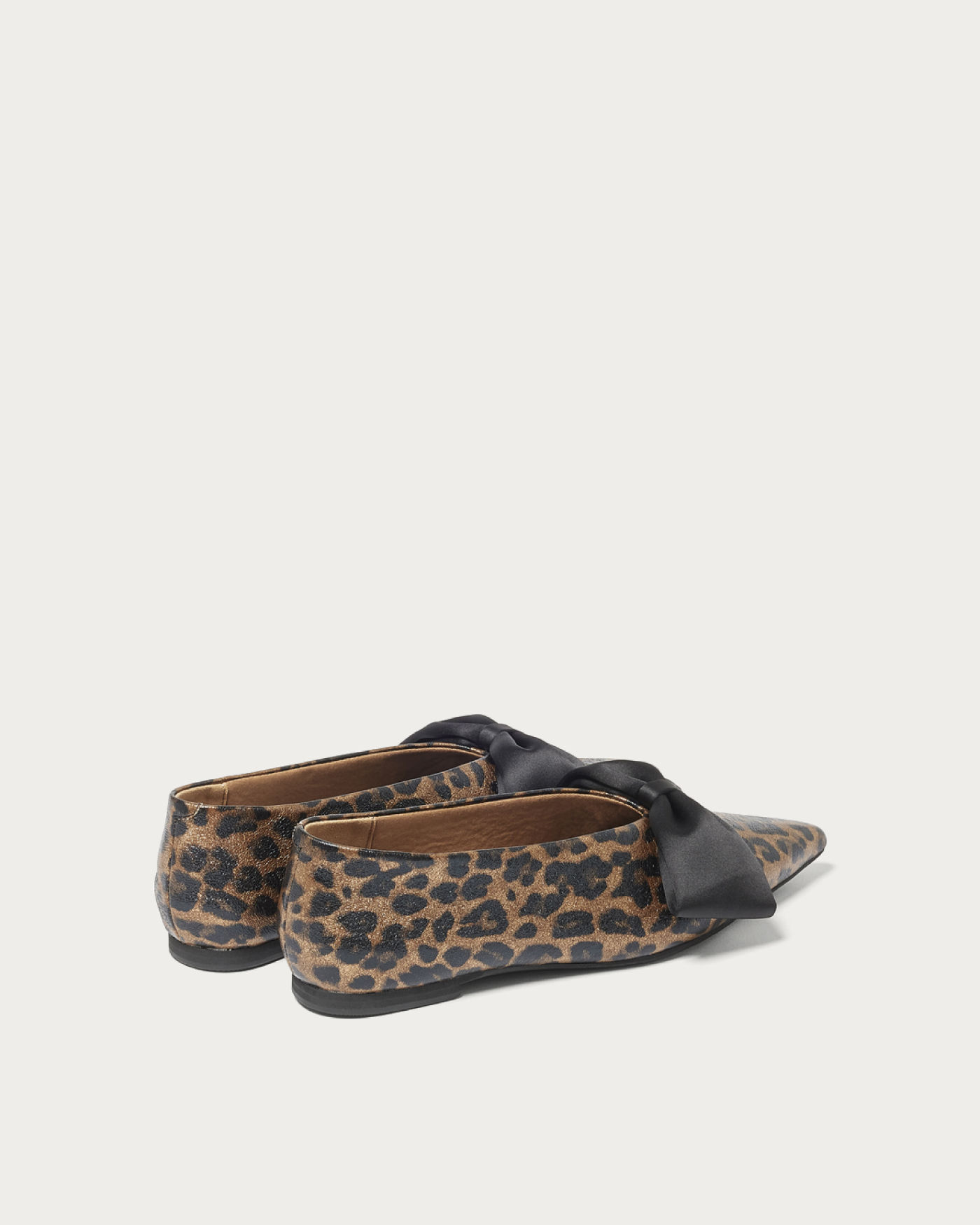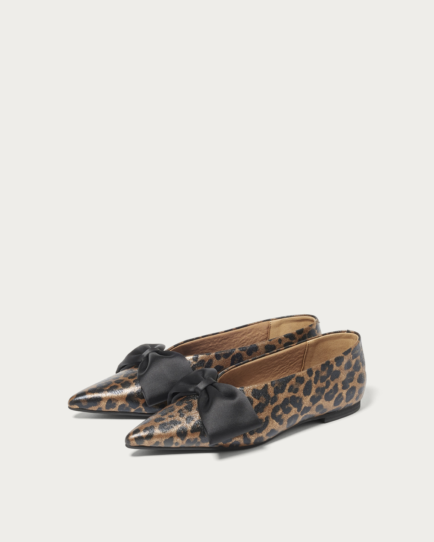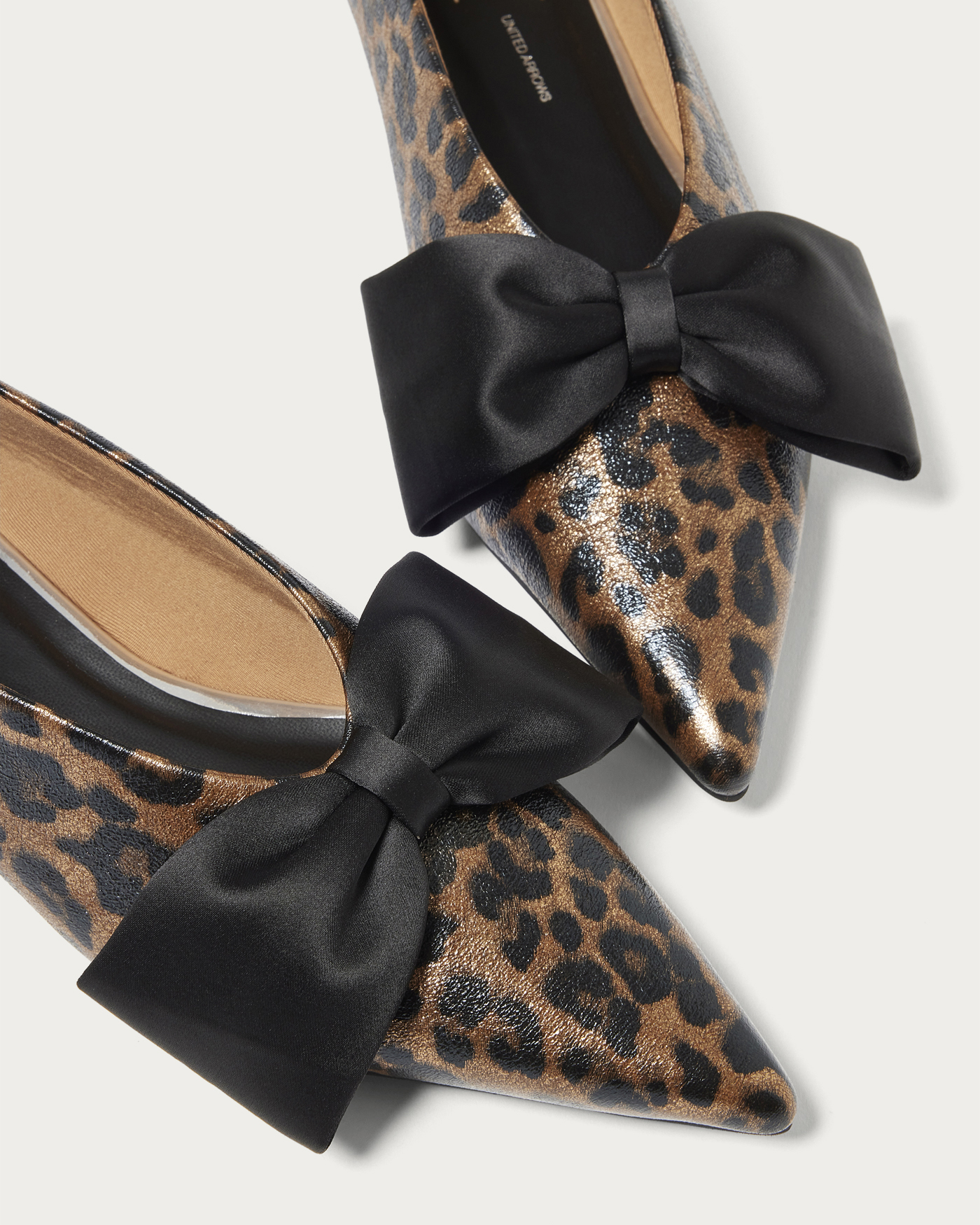 大ぶりリボンが目を引くフラットシューズは、深めのカットで甘さを抑えたモードな仕上がり。柔らかなアッパー素材による快適な履き心地も嬉しいポイントです。レースタイツでバレエコアに、スポーツソックスでストリート感をプラスするなど、スタイリング次第で印象を自在にチェンジできる一足です。