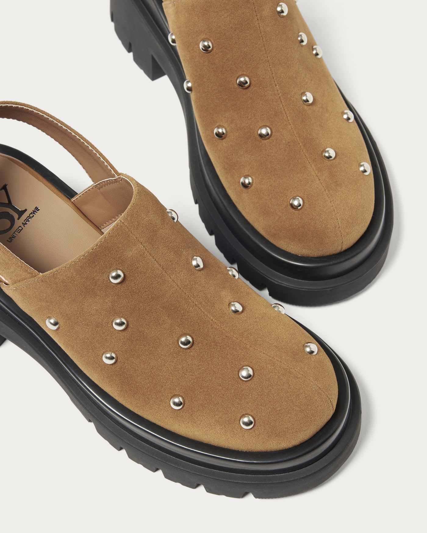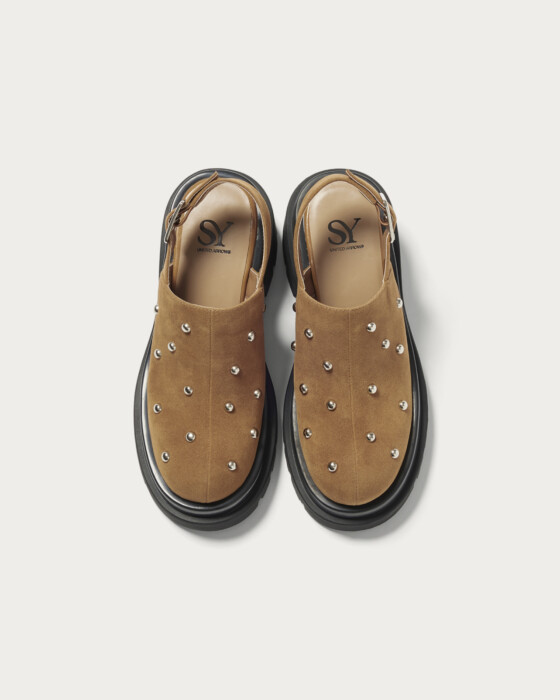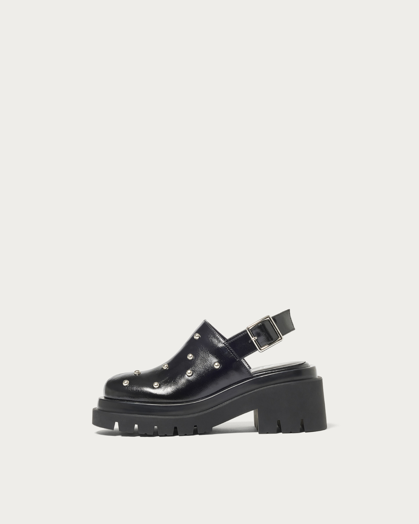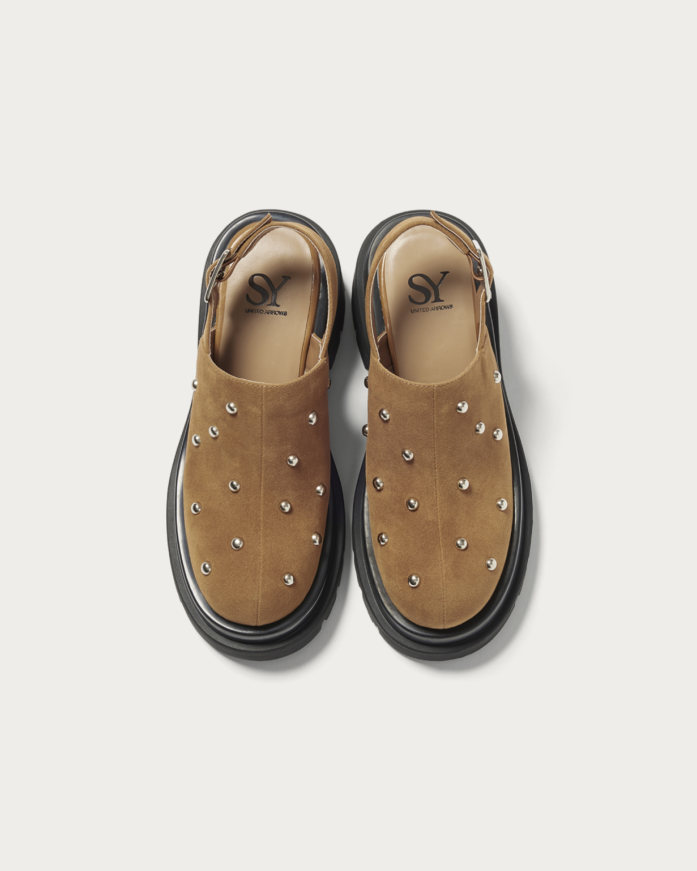 存在感のある8mmスタッズを全体に散りばめた、エッジの効いたデザインが魅力のフラットシューズ。程よいボリューム感とシンプルなフォルムがバランスよく、どんなボトムスにもマッチ。ルーズソックスなどを合わせて足元にボリュームを加えれば、旬なムードとスタイルアップを両立できる一足です。