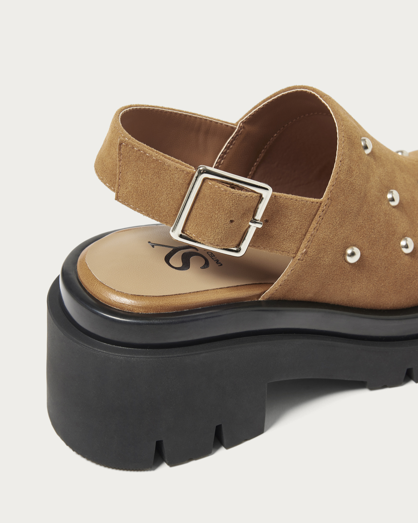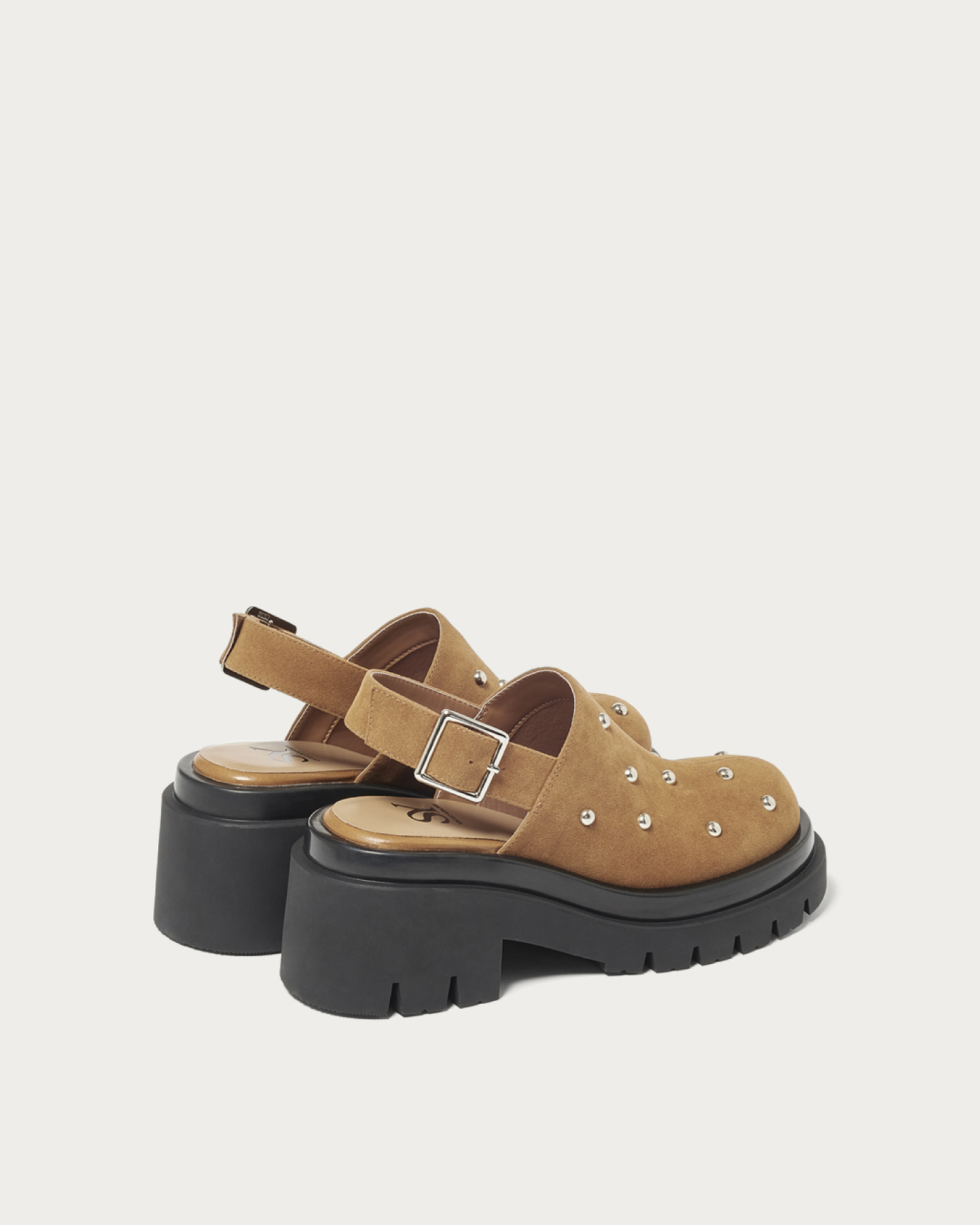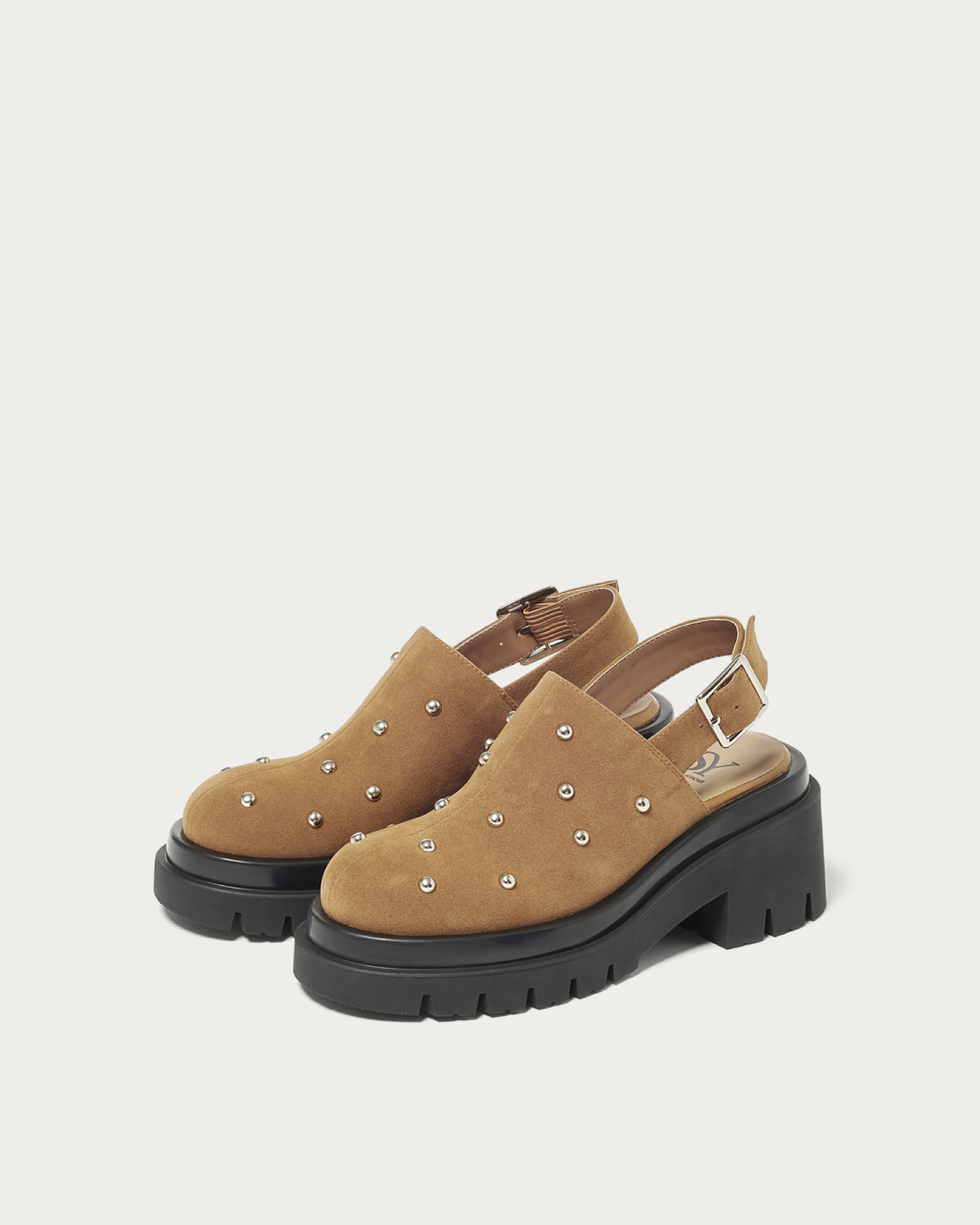 存在感のある8mmスタッズを全体に散りばめた、エッジの効いたデザインが魅力のフラットシューズ。程よいボリューム感とシンプルなフォルムがバランスよく、どんなボトムスにもマッチ。ルーズソックスなどを合わせて足元にボリュームを加えれば、旬なムードとスタイルアップを両立できる一足です。