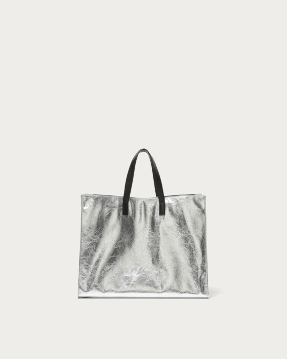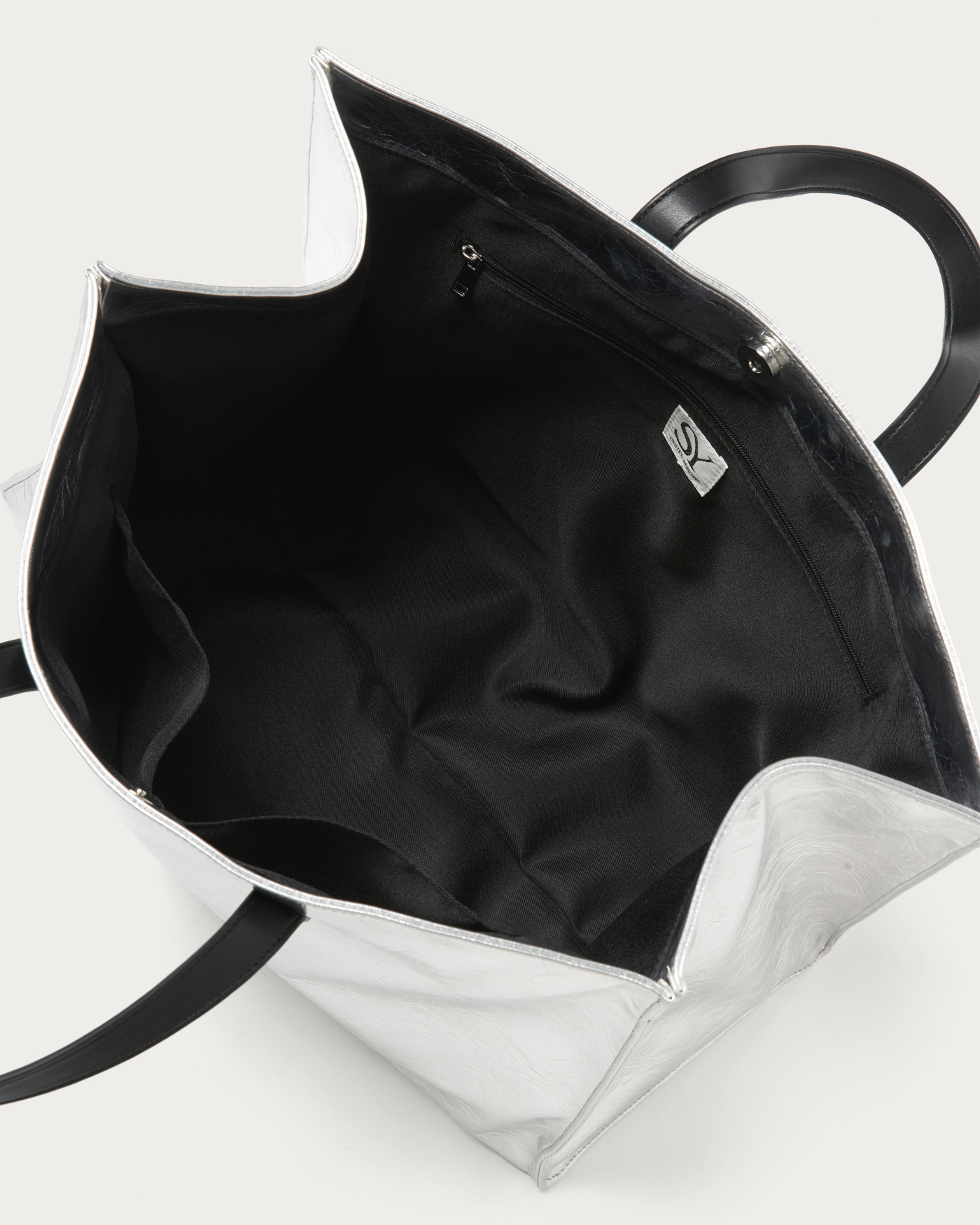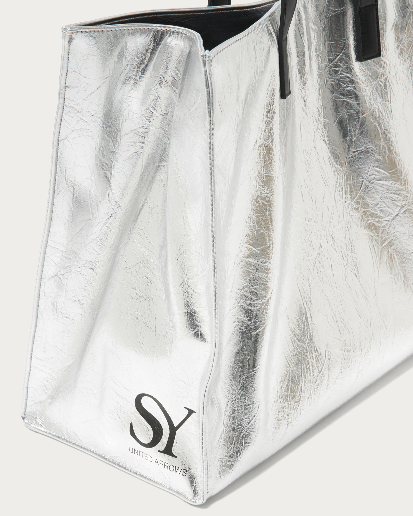 ゆったりとしたサイズ感が魅力のビッグトートバッグ。シンプルなデザインに、側面の〈SY〉ロゴがさりげない存在感を放ちます。荷物が多い日も頼れる収納力で、デイリーにも通学にもぴったりです。モードなスタイルに自然と溶け込み、さっと持つだけでこなれ感を演出してくれるアイテムです。