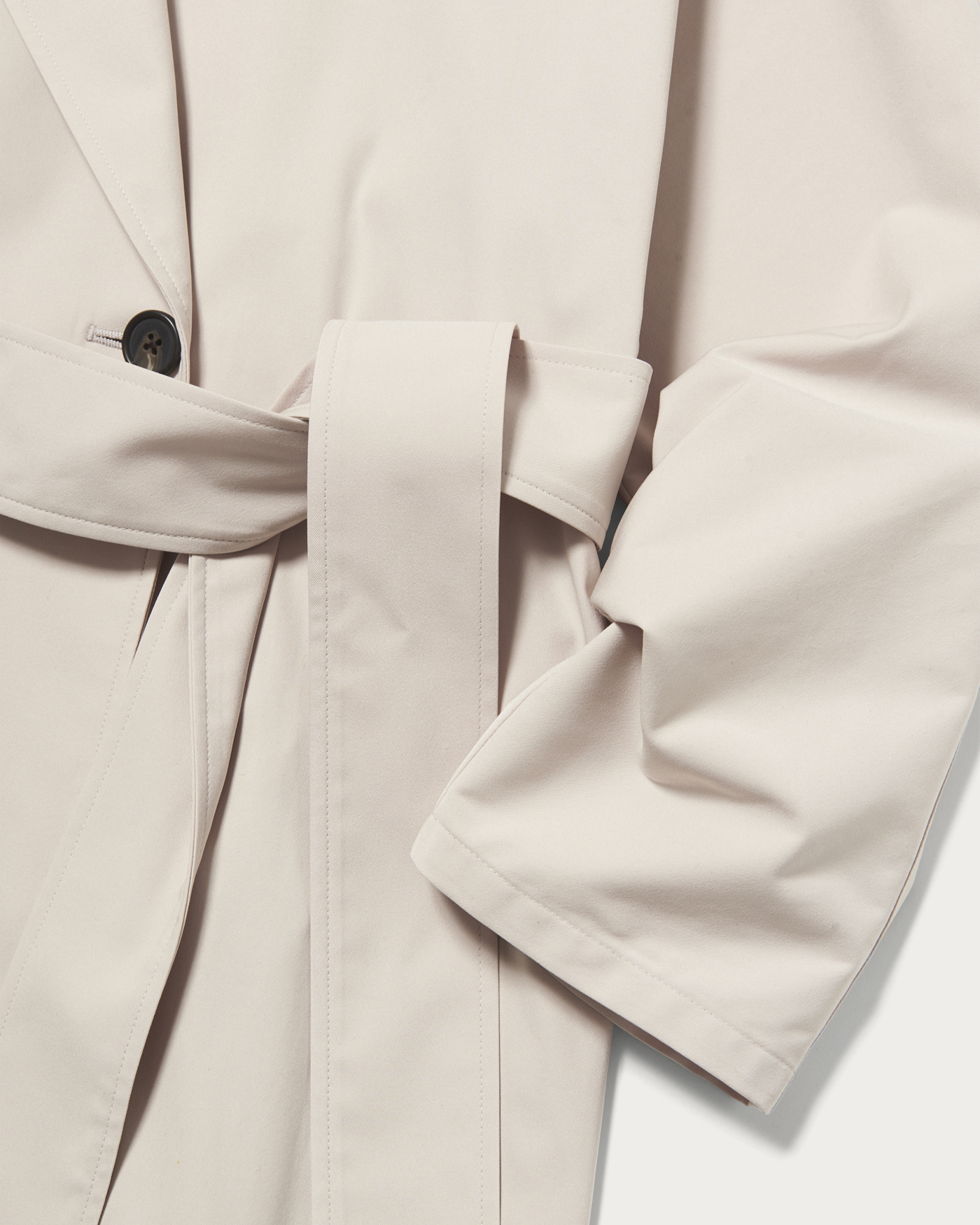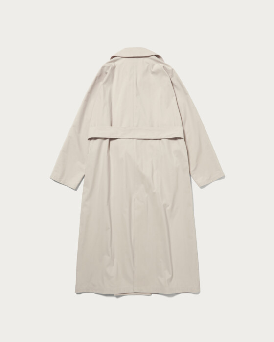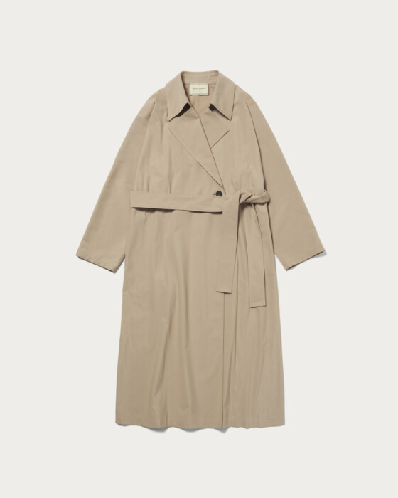 定番トレンチコートはどんなコーディネートにも合わせやすく春のムードを高めます。袖の切り返し部分がないため中に厚手のニットを着たり、デザイン性のあるブラウスを合わせたりと中に合わせるトップスを選ばず着用いただけます。共布のウエストベルト付きでスタイルによって変化を楽しめる一着です。