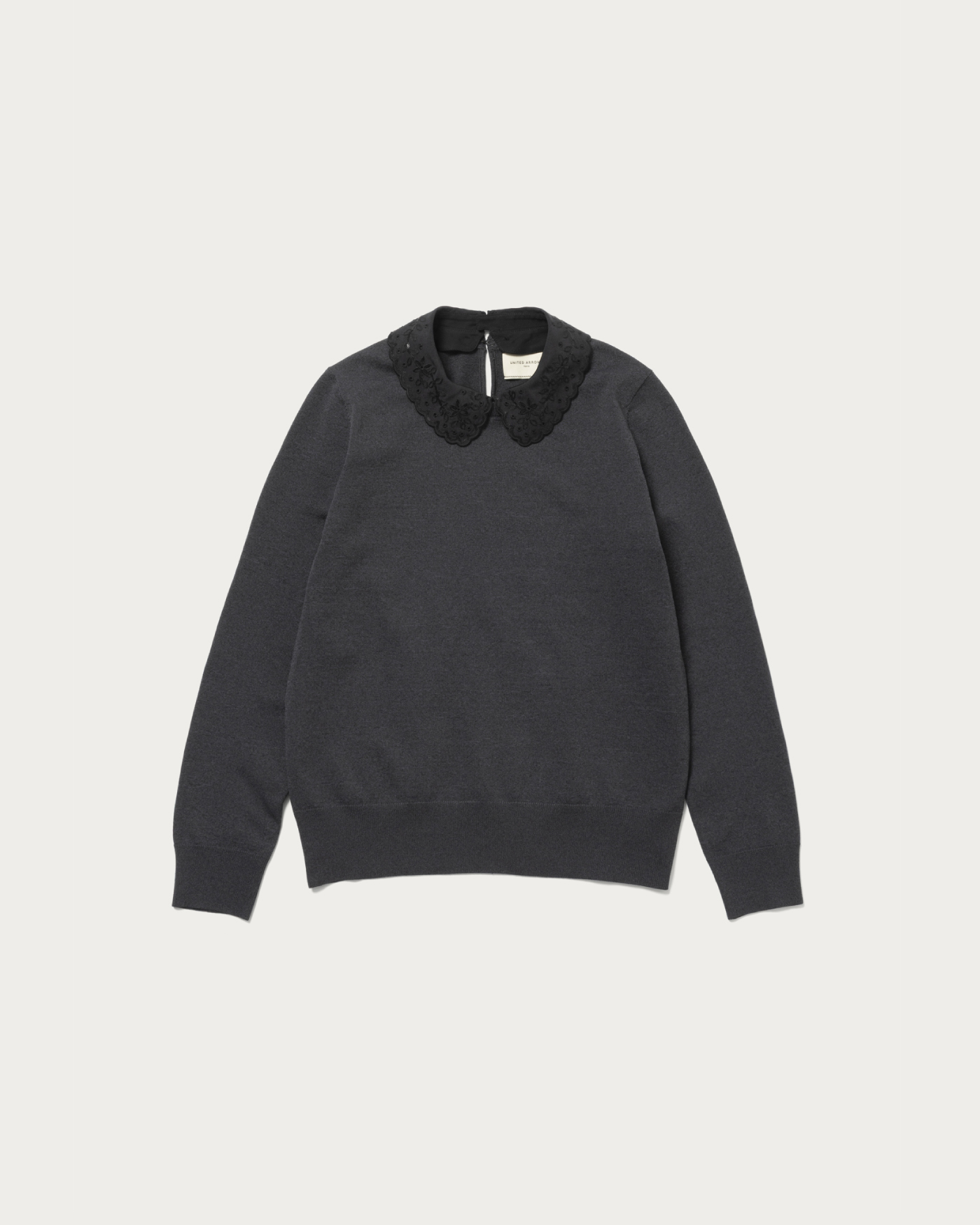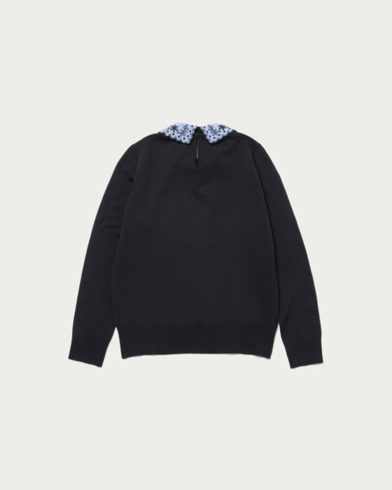 きらきらと控えめなスパンコールの刺繍の襟が特徴的なニット。取り外し可能な襟はスパンコールのきらめきや、花柄のディテールが華やかさをプラスします。襟を取り外すと着回し力の高いベーシックなニットになり、異なった印象を楽しめる2WAY仕様。休日のカジュアルスタイルからオフィスシーンまで、合わせるボトムスによって幅広くコーディネートいただける一着です。