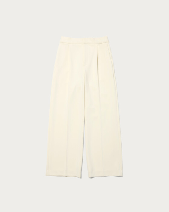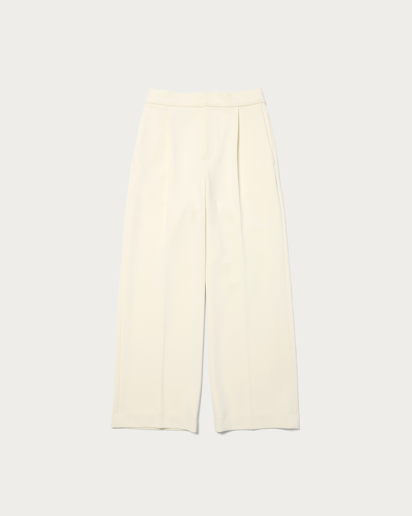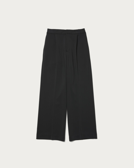 着用時にシワになりにくく、ストレッチがきいた着心地の良さが人気のSPONGYシリーズのワイドパンツ。UVカットや吸水速乾、透け防止(白のみ)の嬉しい機能を備えた、セレモニーシーンから普段使いまで幅広いシーンで活躍するアイテムです。1タックで膝から裾までのワイドストレートシルエットで、後ろウエストは平ゴム入りと着心地の良さも魅力です。ジャージーならではの着心地の良さが魅力の汎用性の高い一着です。
