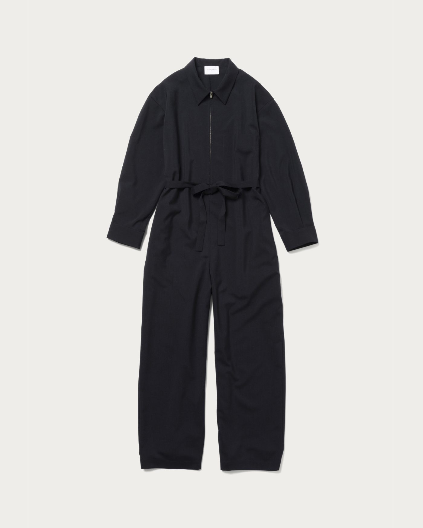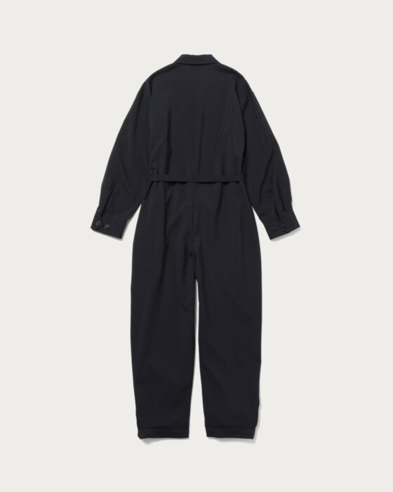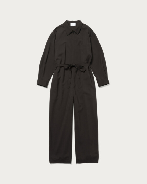 襟付きのトラッドな気分を落とし込んだハンサムなオールインワン。フロントはジップ仕様、大きめのサイズと適度な落ち感、さらりとした風合いでこなれた印象に仕上がります。共布のベルト付きで気分によってシルエットに変化をつけて楽しめます。ジップを上げたスタイルや、インナーにロゴTやタンクトップを合わせたカジュアルスタイルもおすすめです。