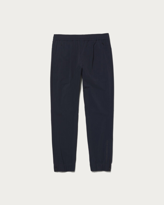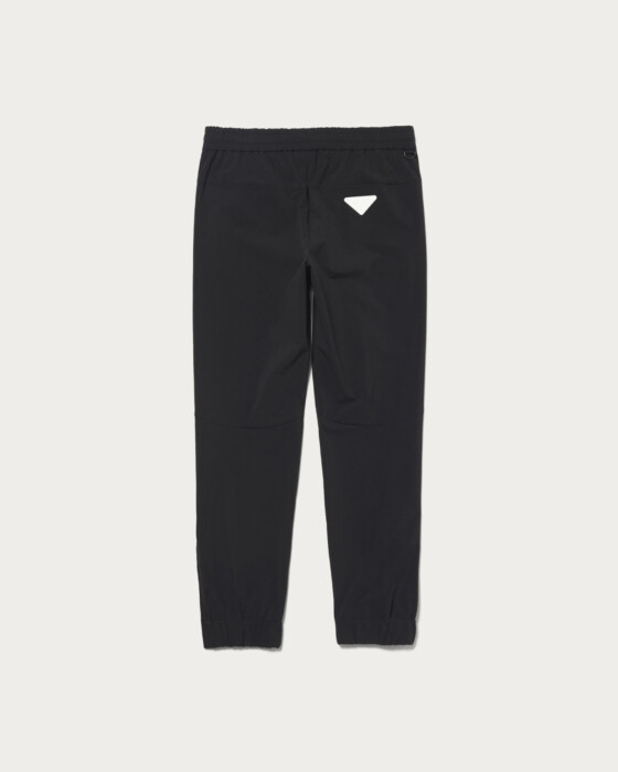 ジャストルーズなテーパードラインで、動きやすさと美しいシルエットを両立させたジョガーパンツ。1プリースの程よいゆとりのある腰回りとギャザー、ドローコード仕様のウエストでフィット感の良さもポイント。フロントはコンシールジップポケット、右後ろにDカン、裾口はジップ仕様です。左裾口のロゴとヒップ部のワッペンがアクセントとして効いています。