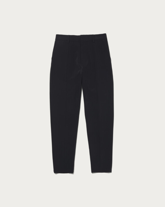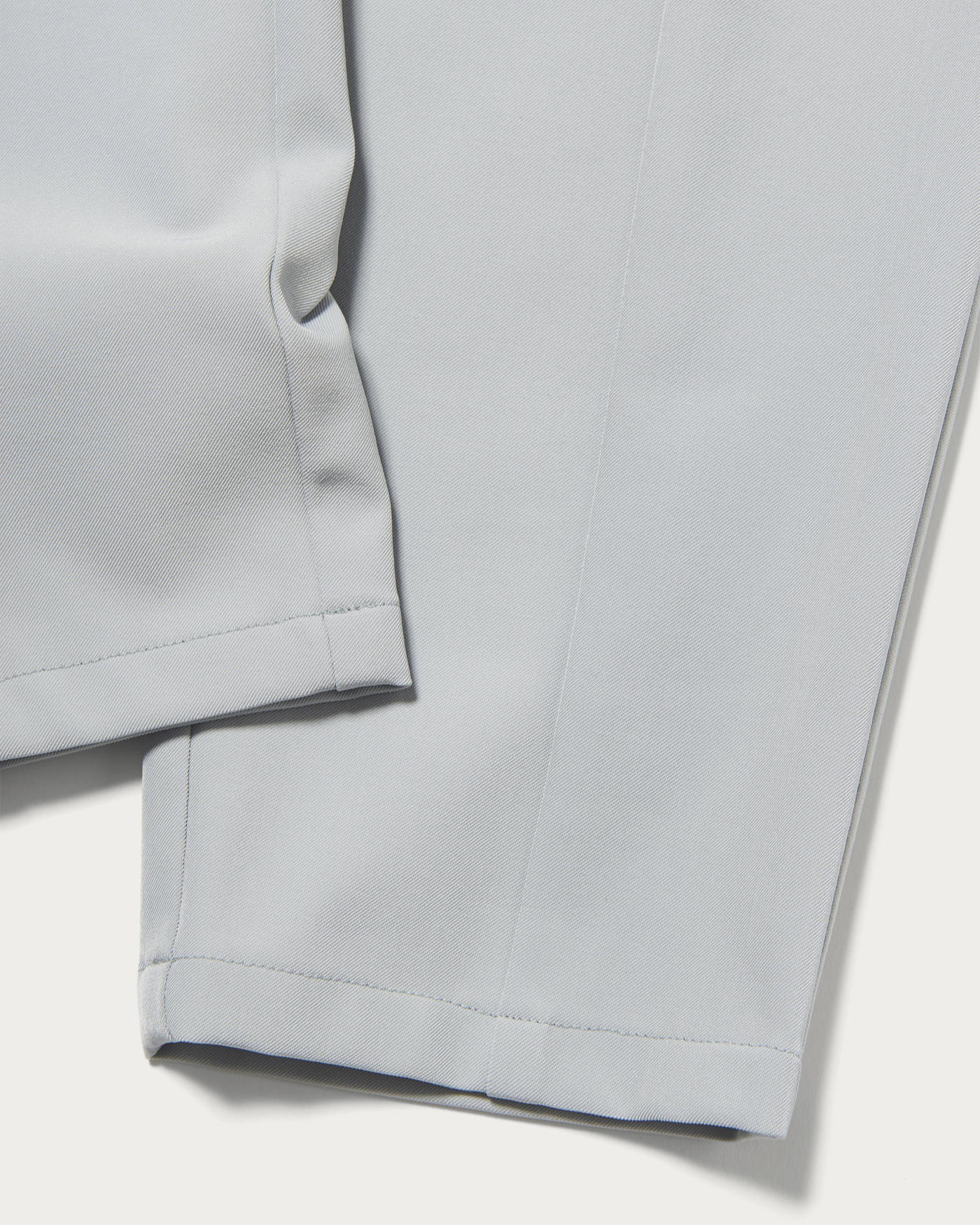 センタークリーツが入った上品なストレートラインで、女性らしいシルエットを演出。ウエストにはジャガードゴムを採用しブランドロゴを上品に表現。滑り止め効果のあるプリントでシャツのずり上がりを防ぎ、安定した着用感を保ちます。後ろ右ポケット下に配したサークル型ブランドアイコンが、さりげないアクセントを添える一本です。
