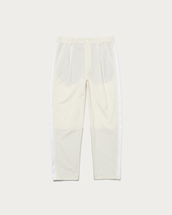 サイドのパネルデザインがクラシックな雰囲気を醸しだすややゆとりのある1プリーツのテーパードパンツ。裾の後部にはメッシュ素材を配置し、通気効果を高めます。テーラーメイドとユナイテッドアローズによるコラボコレクションです。