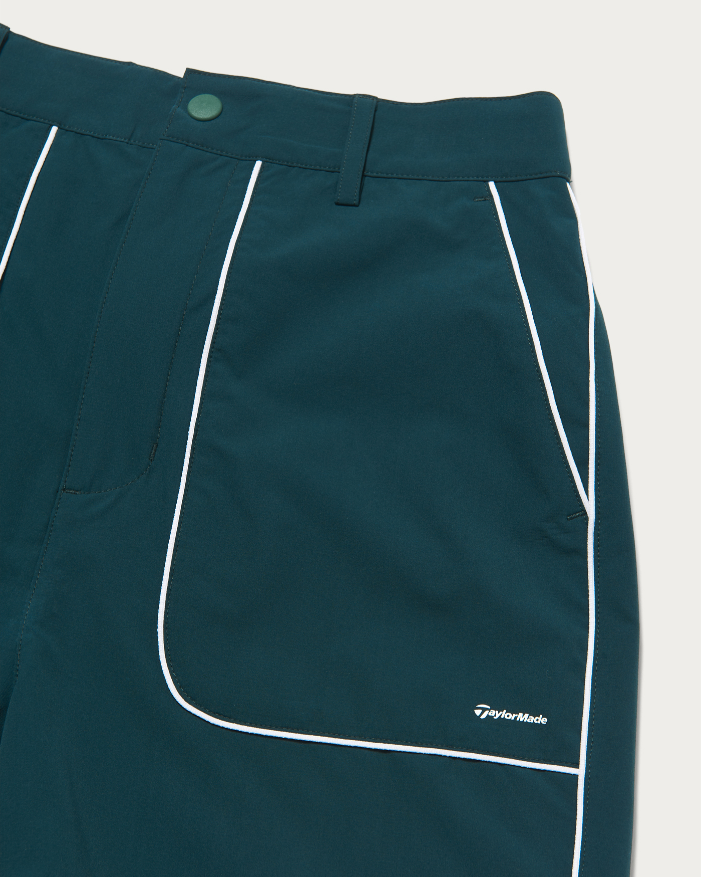 やや長めの丈でカジュアルなシーンでも着まわせるショーツ。パイピングデザインが特徴的で両ポケット下部にミニブランドロゴが配置されています。テーラーメイドとユナイテッドアローズによるコラボコレクションです。