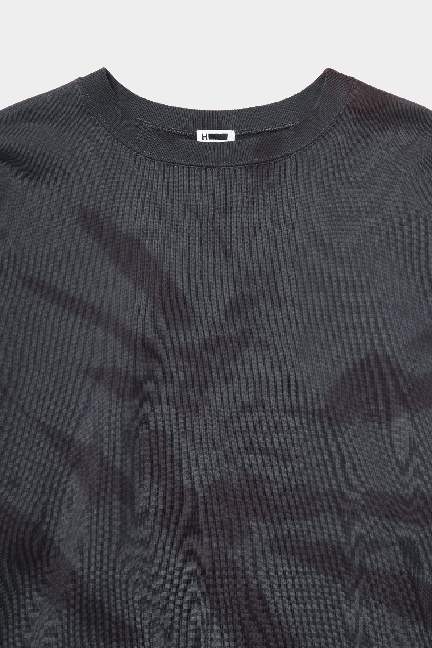 抜け感がありながらもモードな印象のタイダイ柄。クリーンなボトムを合わせて都会的なスタイリングに