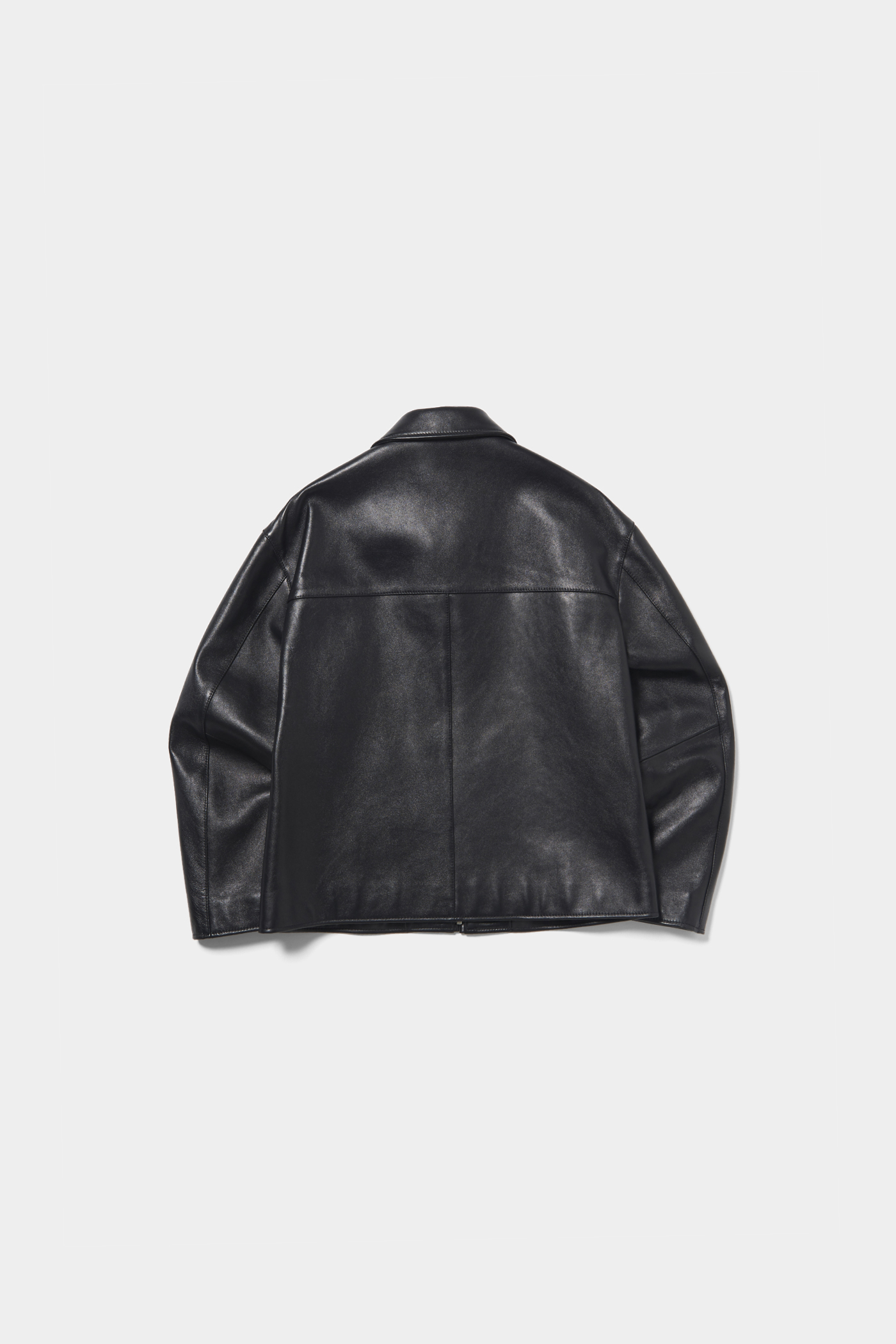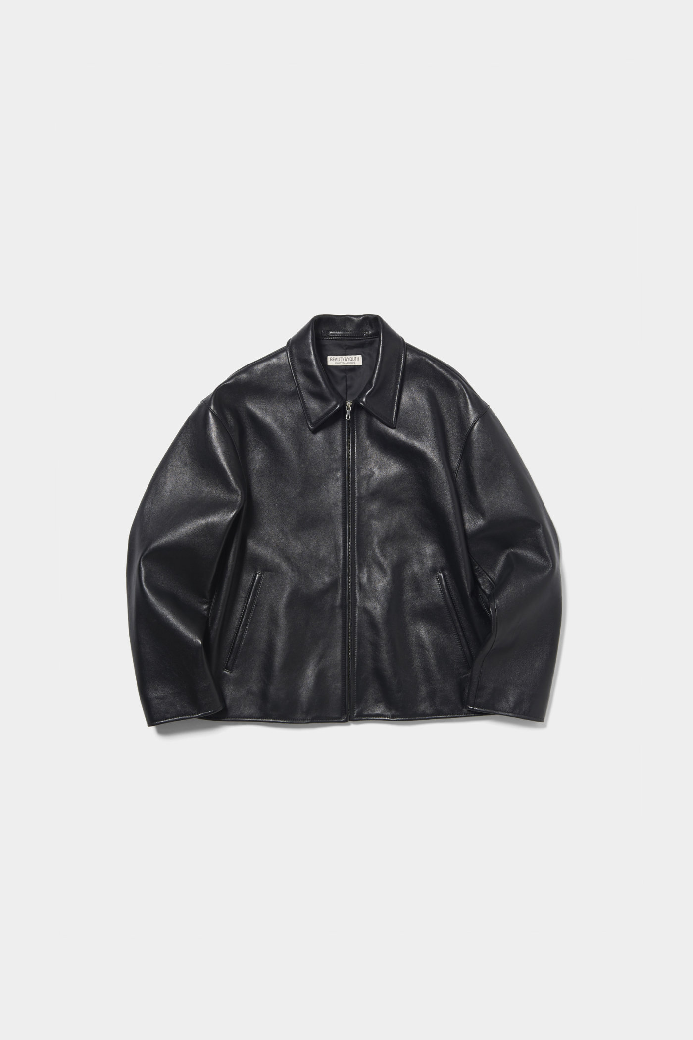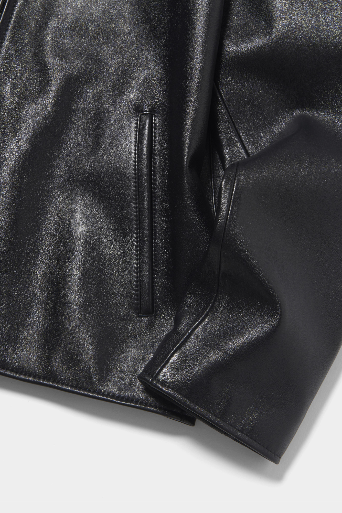 静かな存在感を放つレザージャケット。シルエットにゆとりがあり、こなれ感を出せます