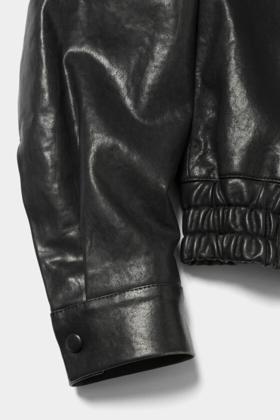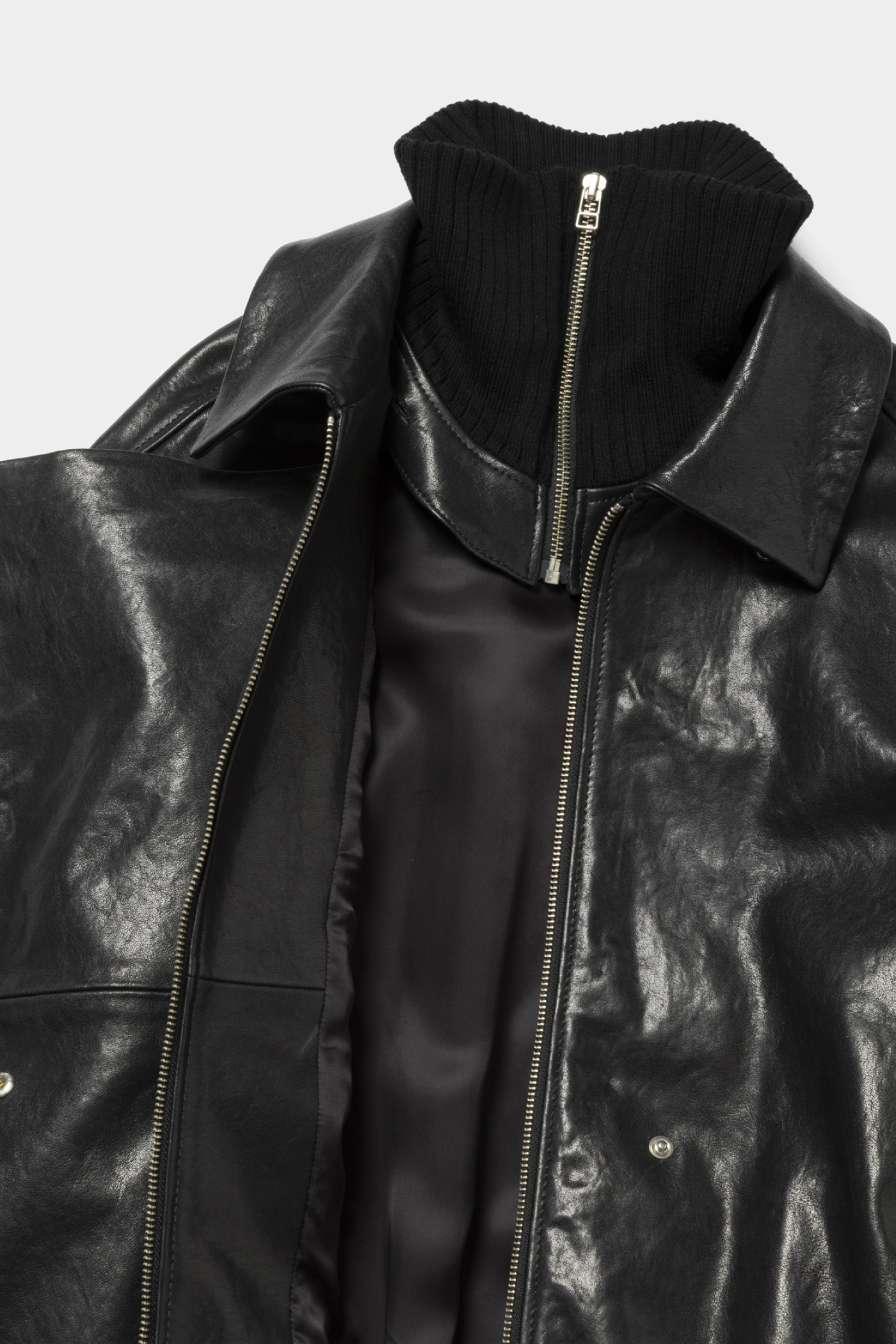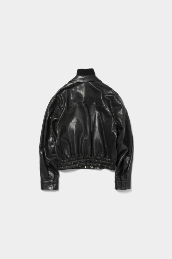 無骨ではないのに、しっかりと重みを感じさせるレザージャケットです。包み込むようにレザーでくるまれたボタンや、裾のシャーリングの絞り、首元のラインまで緻密に設計されていて、構築的な美しさがあります。トレンドで選ぶというより、歳を重ねても着たいと思えるような一着。意志を持って服を楽しむ人にこそ、ふさわしい存在ですね