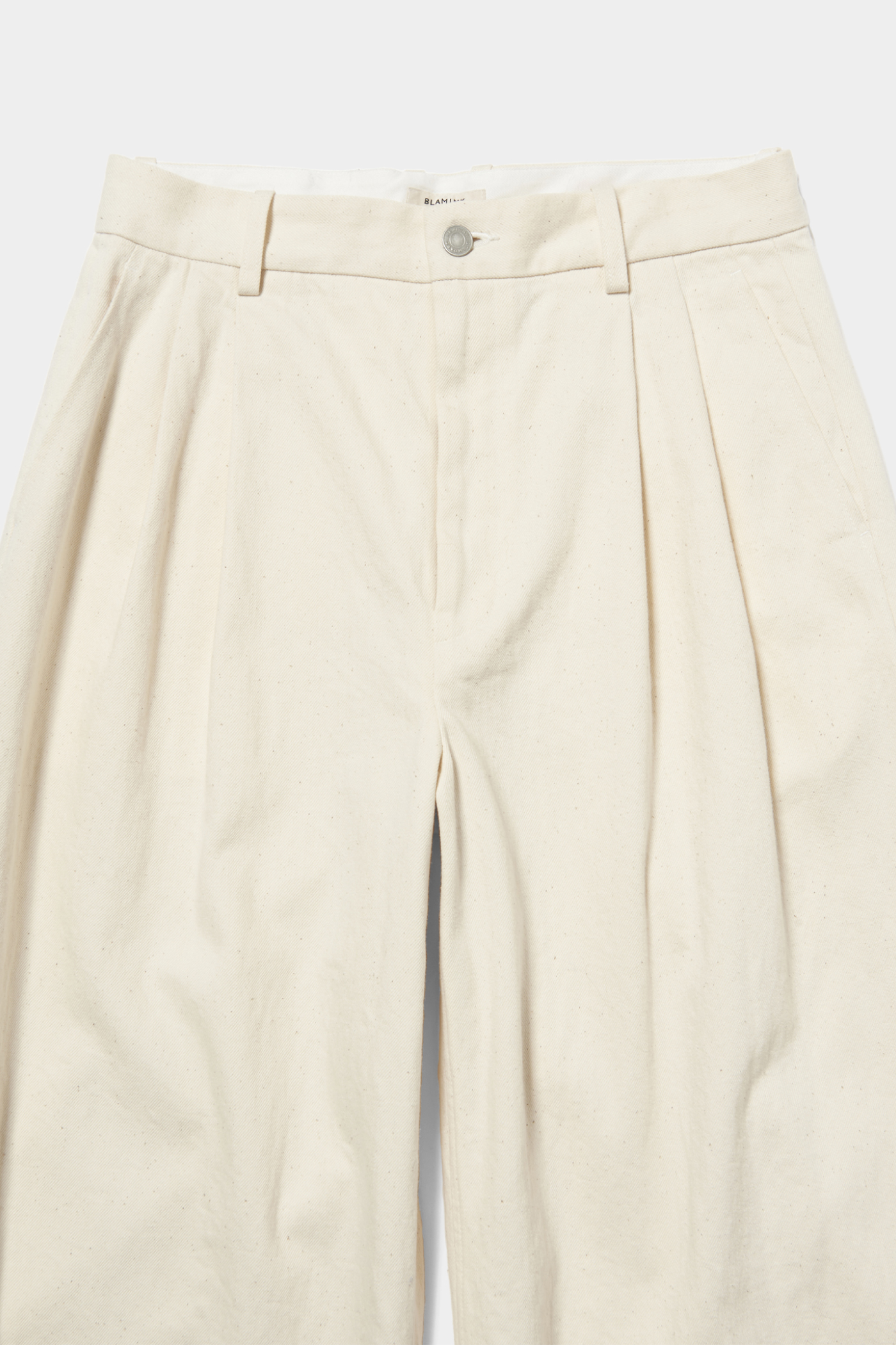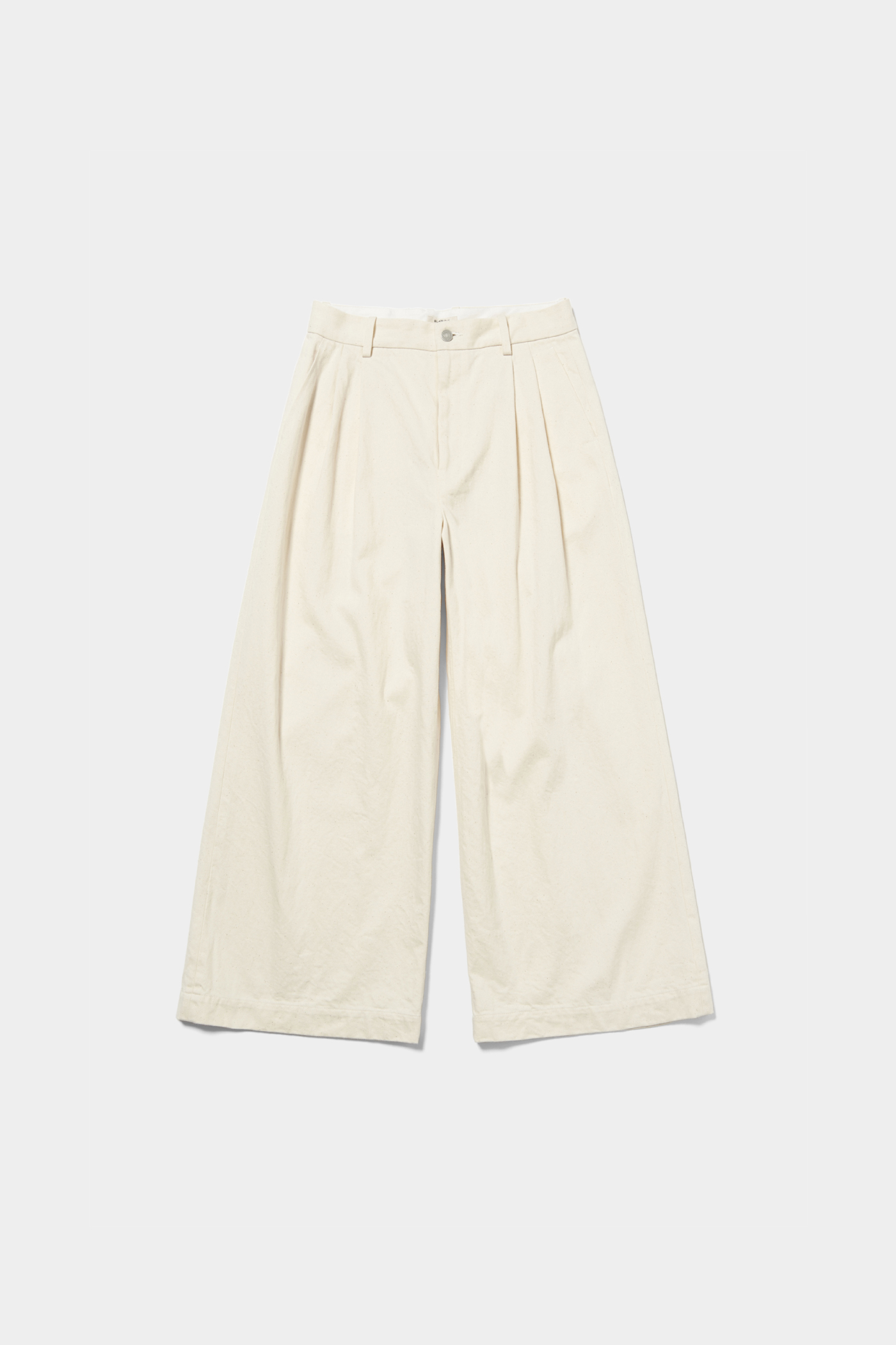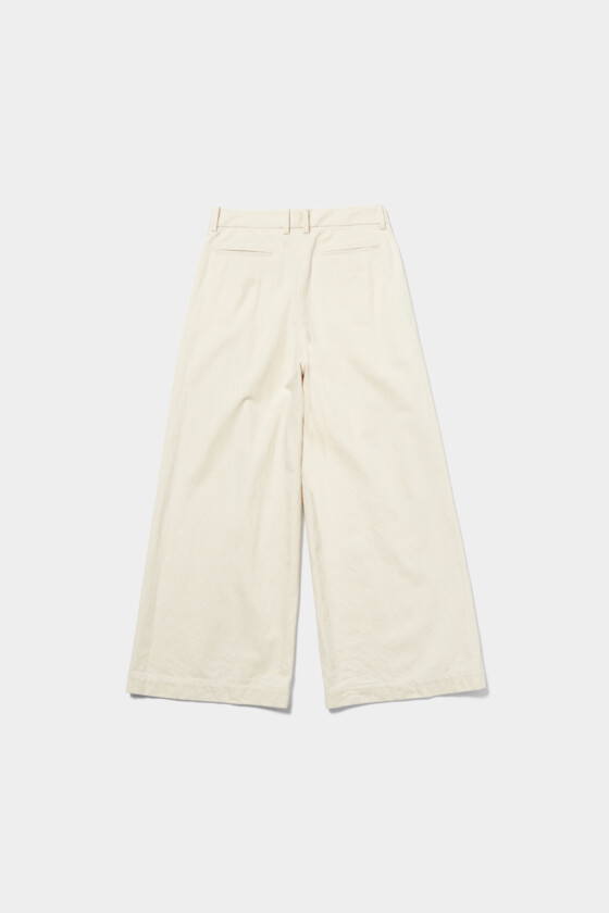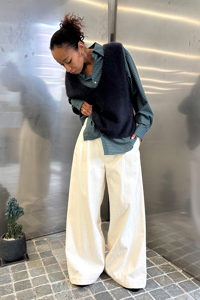 計算されたタックワークにより立体感を出したバギーデニム。秋冬に着用しても重くならず、デイリーにも取り入れやすい一本です。