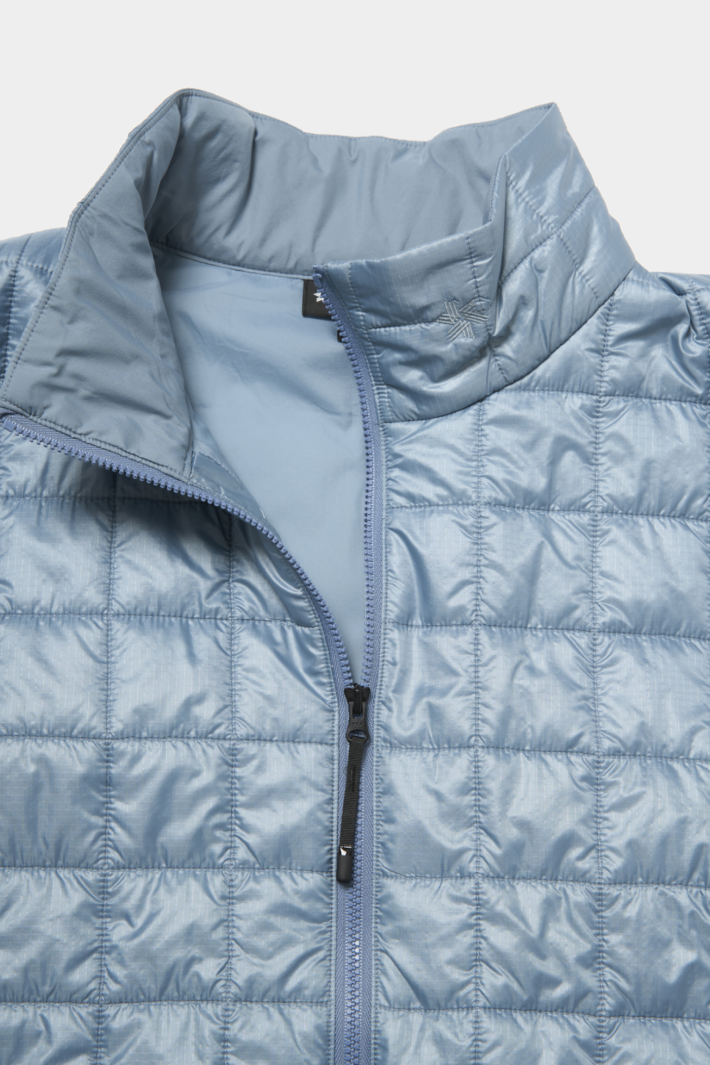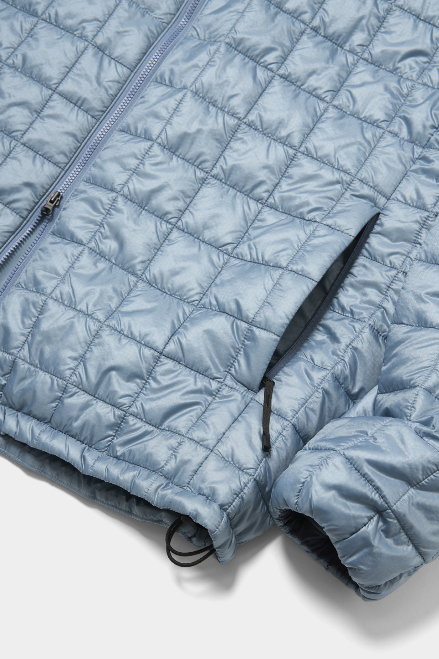淡いブルーのカラーリングが目を引く一枚。軽やかなカラーと程よい光沢感が、冬のスタイルに抜けをプラスしてくれます。