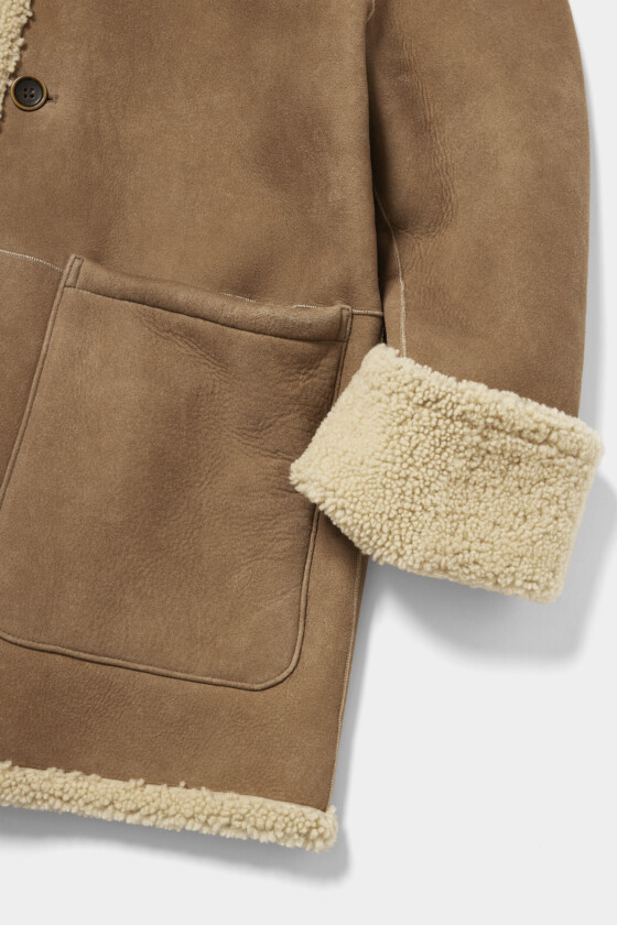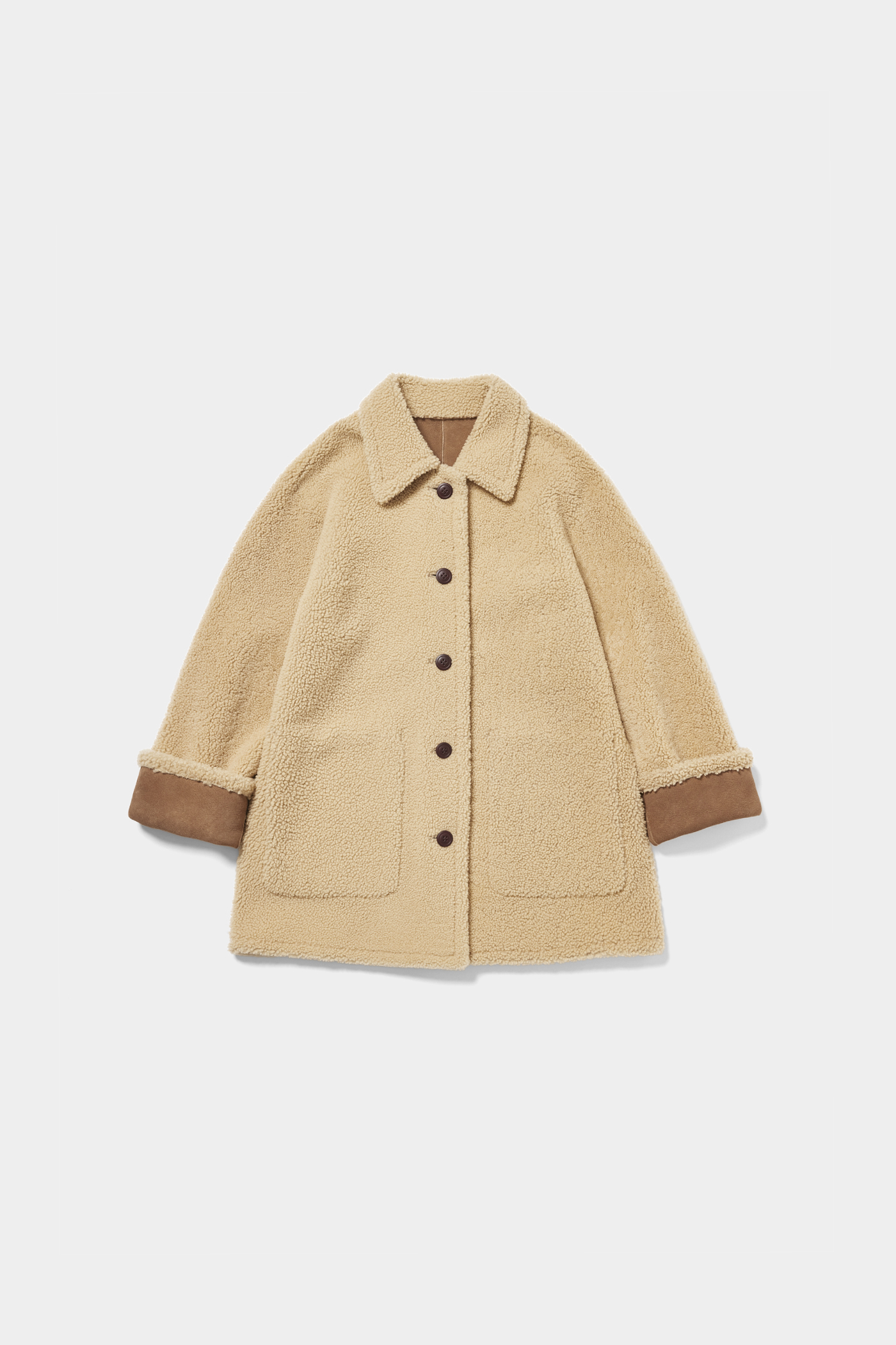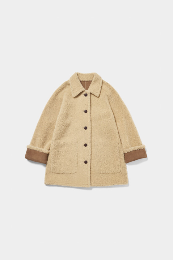 ほどよいボリューム感で、ムートン特有の甘さを抑えた大人な印象のコート