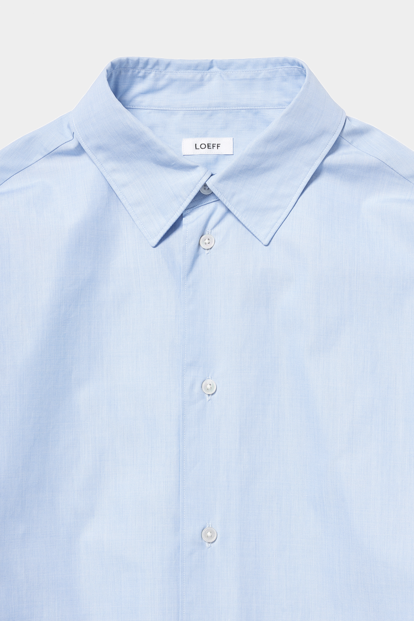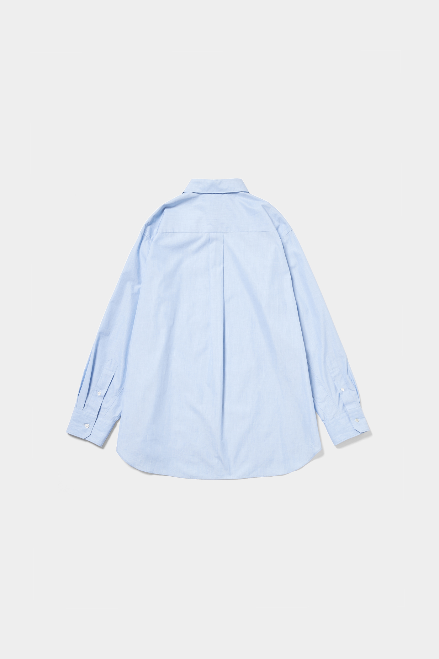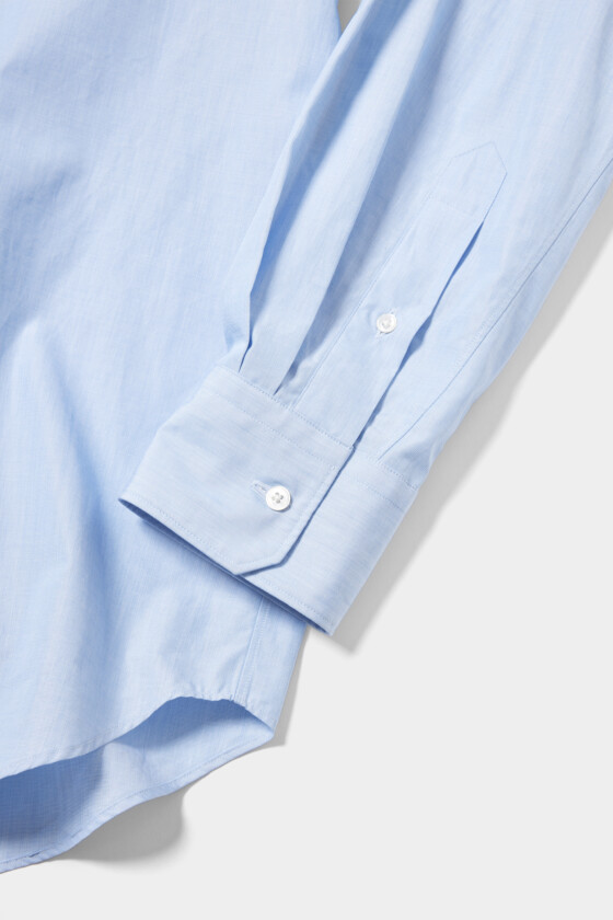 ブルーのシャツは、一枚で着るだけでなく、オールブラックコーデの差し色として取り入れるのもおすすめ