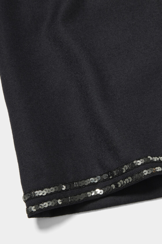 ミニ丈を取り入れることで、ブラックでも重くなりすぎないスタイリングが完成します
