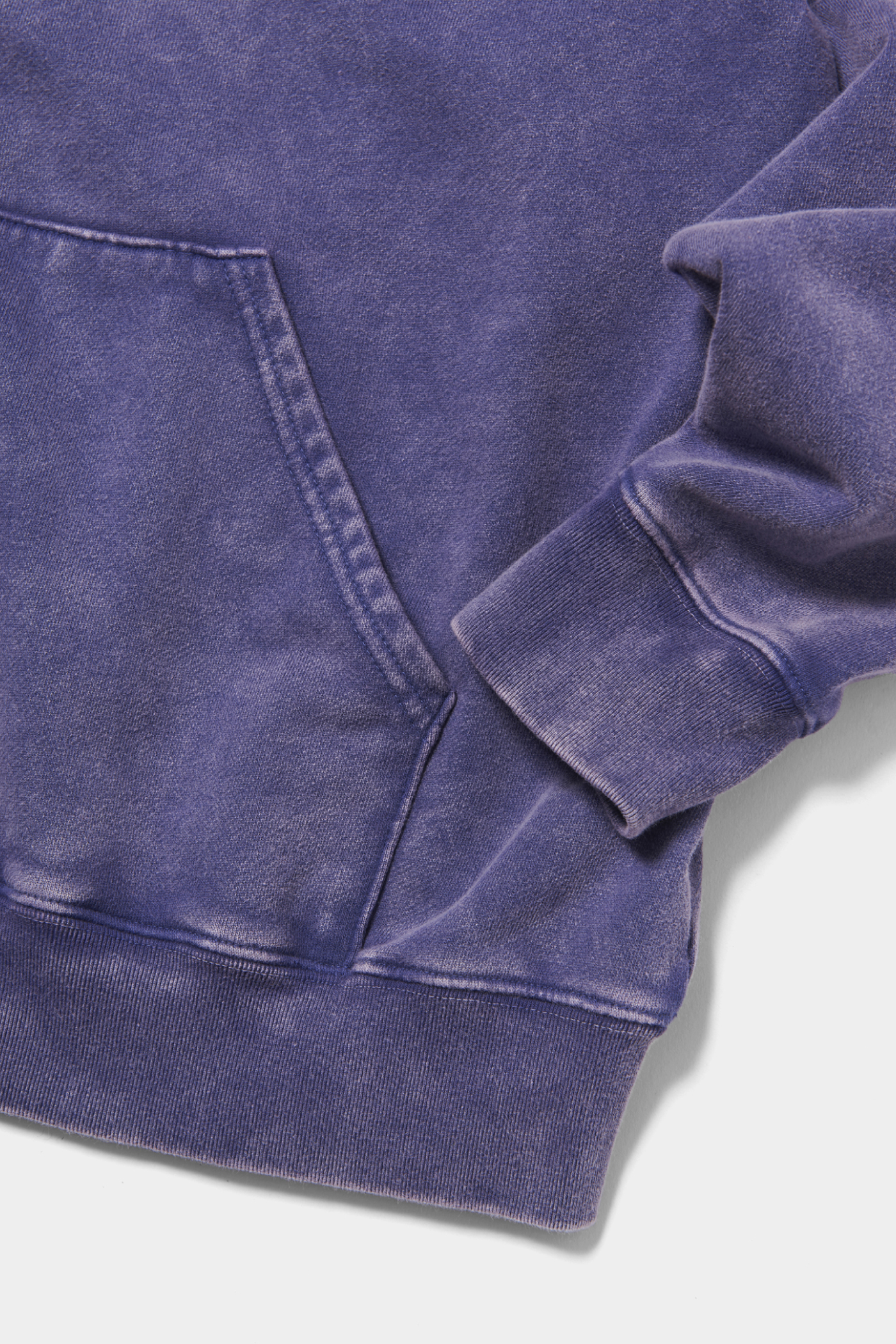 色落ち感が絶妙なパープルのパーカーが軽やかな表情をつくってくれます