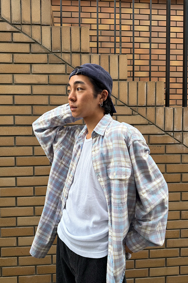 シャツの配色がスタイリング全体の印象を引き締めるキーに
