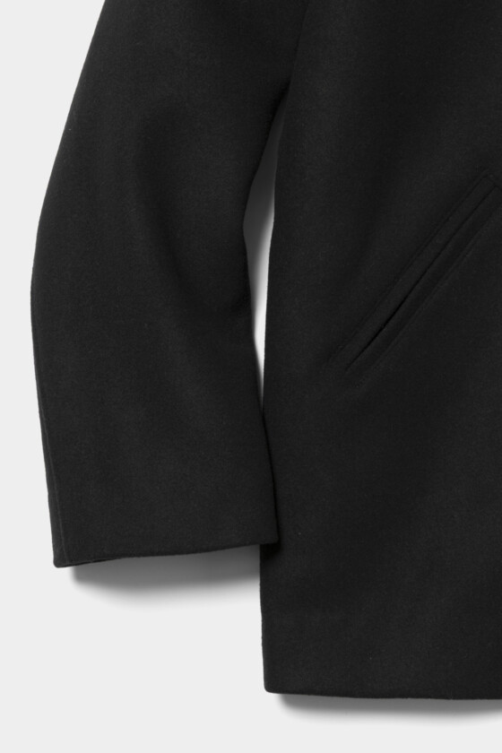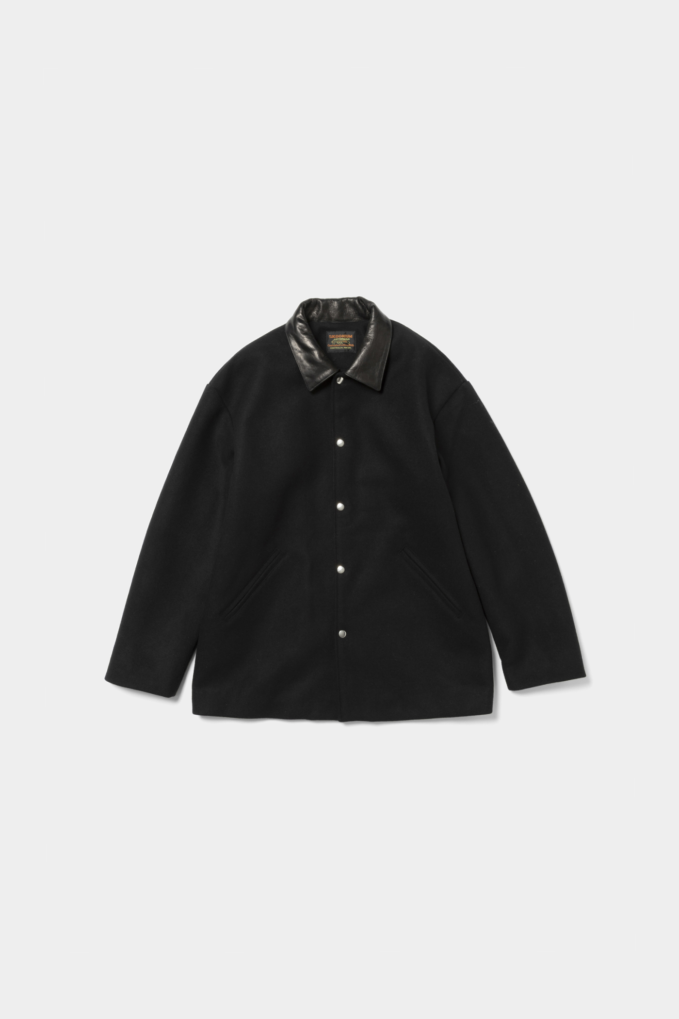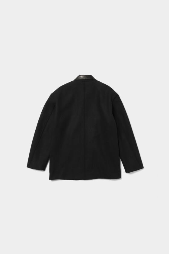 クラシックなカーコートの構造に、現代の空気を吹き込んだ一着だと思います。ソフトなメルトンと、ぎゅっと引き締まったレザーの襟とのコントラストが印象的で、硬派なのにどこか上品。こういうアイテムは“売れる”という以上に、“残したい”と思える服ですね。確かなこだわりと意志を感じます。そんな服がきちんと世に出ていることが、何より嬉しいんです