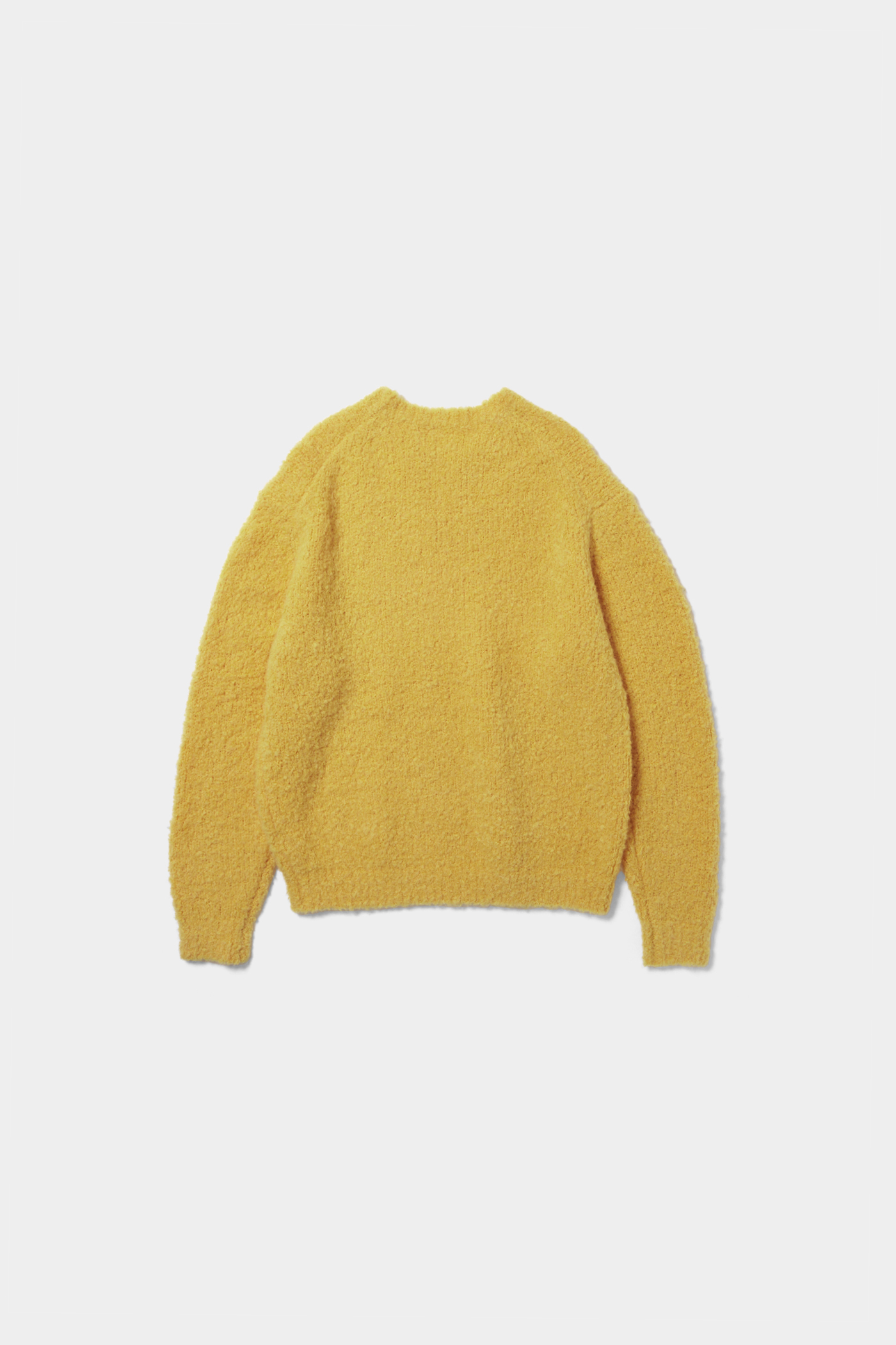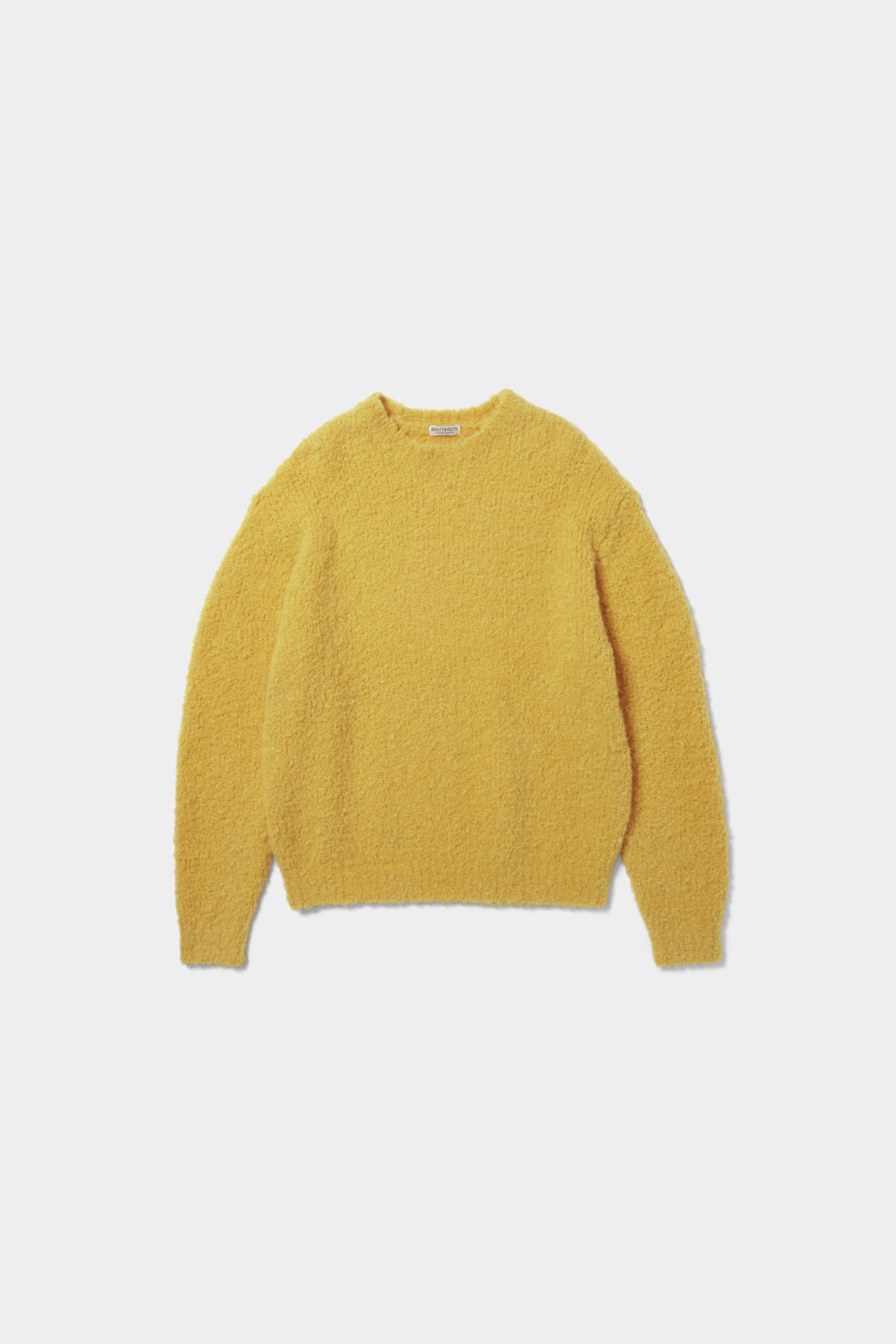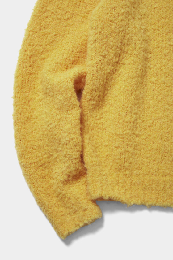 立体感のあるセーターは、メンズアイテムながら柔らかい印象がポイント。スタイリングの差し色としても活躍します。