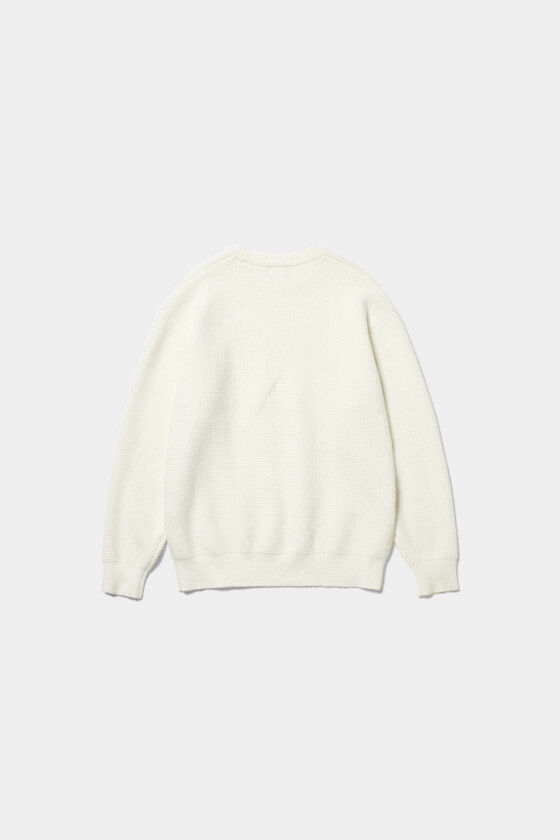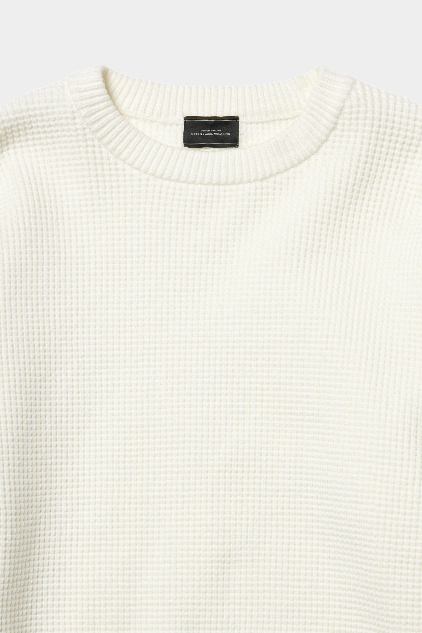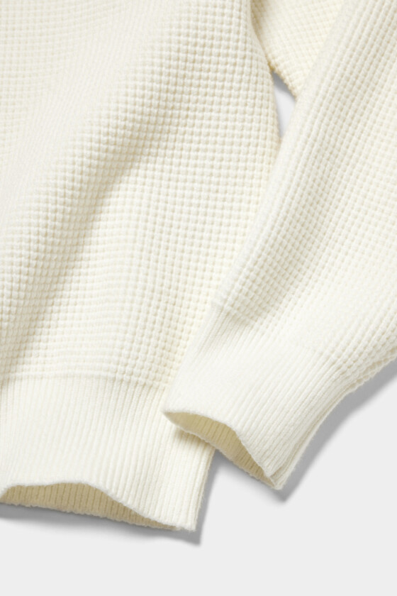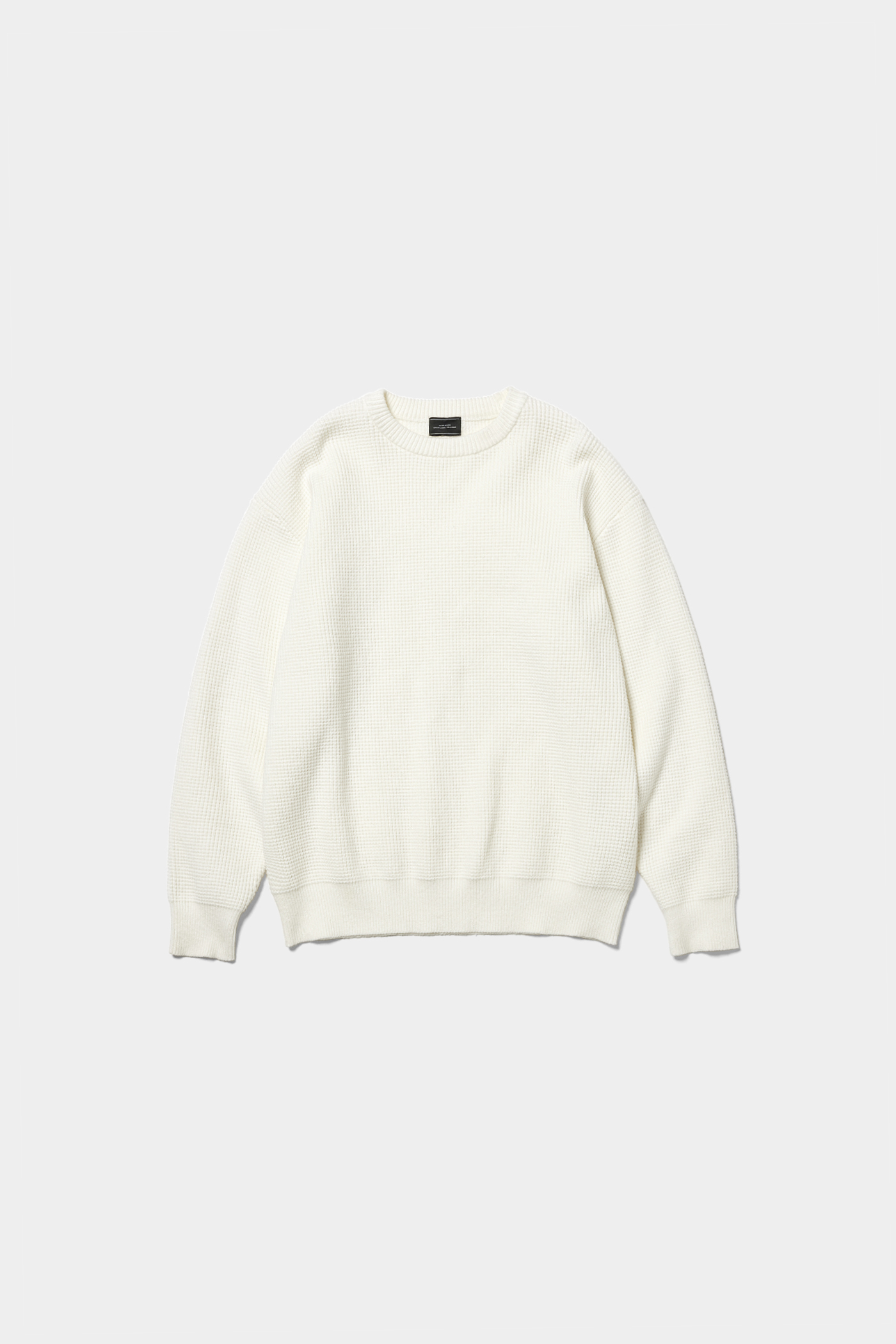 シンプルなセーターは秋冬のスタイリングに欠かせないアイテム。ワッフルのような編み方でまろやかな印象に。