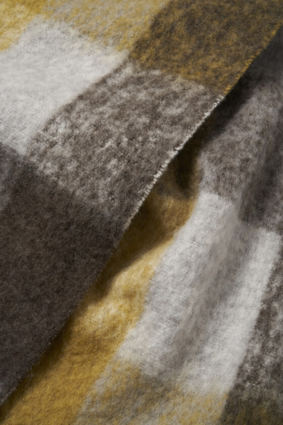 配色が絶妙な大判のマフラーは、巻き方次第で個性を楽しめるアイテムです。ソファーにかけたりとインテリアにもおすすめ。
