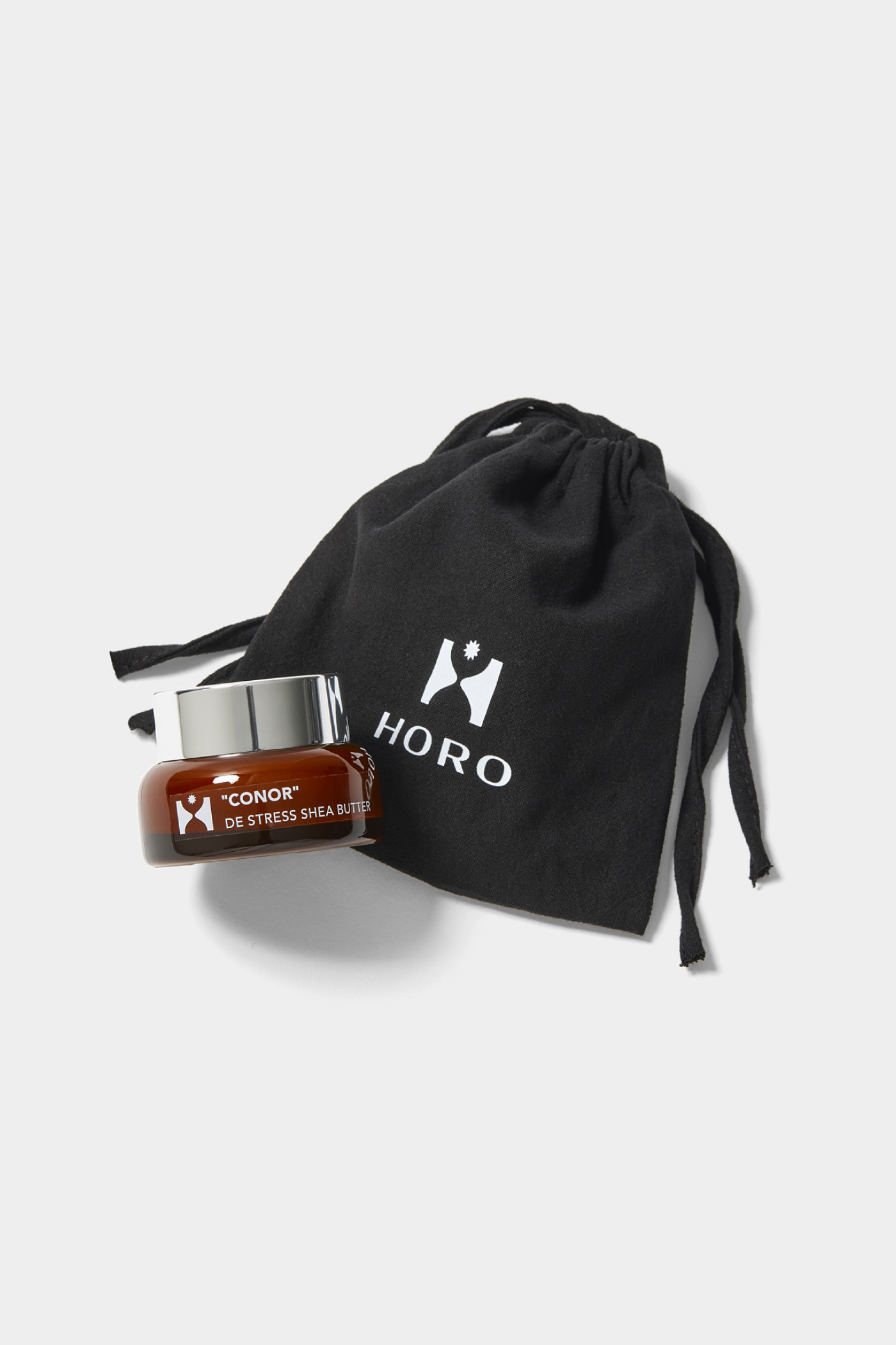 ヘアケアプロダクト〈HORO〉より、アフリカに生息するシアの木の実から採れる植物性油脂であるシアバターを配合したヘアバームCONORを別注。ジェンダーやスタイルを問わず、どんな感性にも寄り添う、毎日のルーティンに取り入れやすいプロダクト。ウッディムスクの余韻が残る、現代的で控えめなエレガンスを体現した、タイムレスな香りのプロファイルです。セット力を備えた固めのテクスチャーも魅力。
