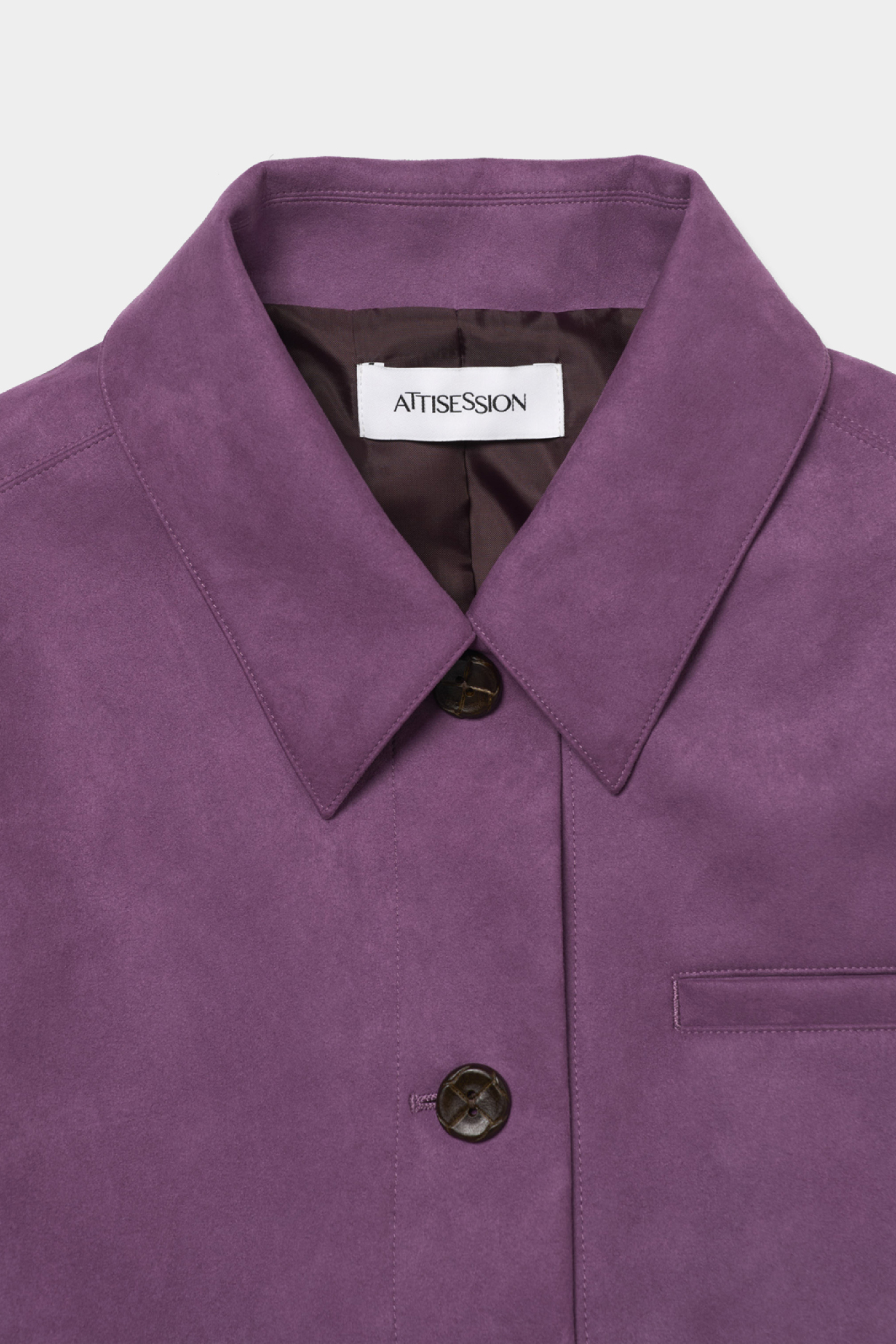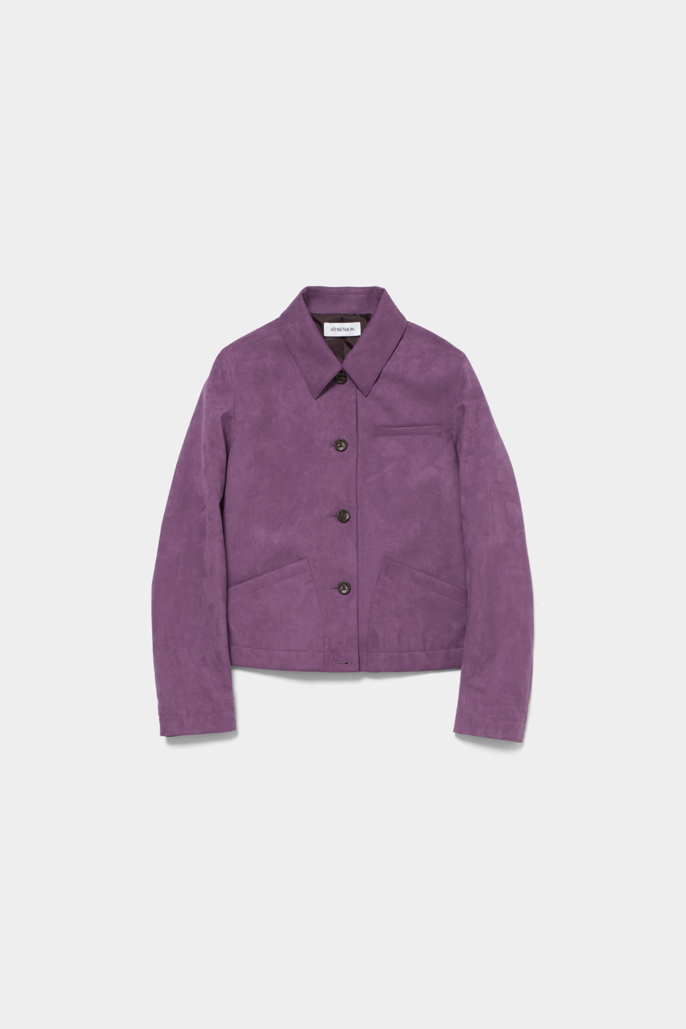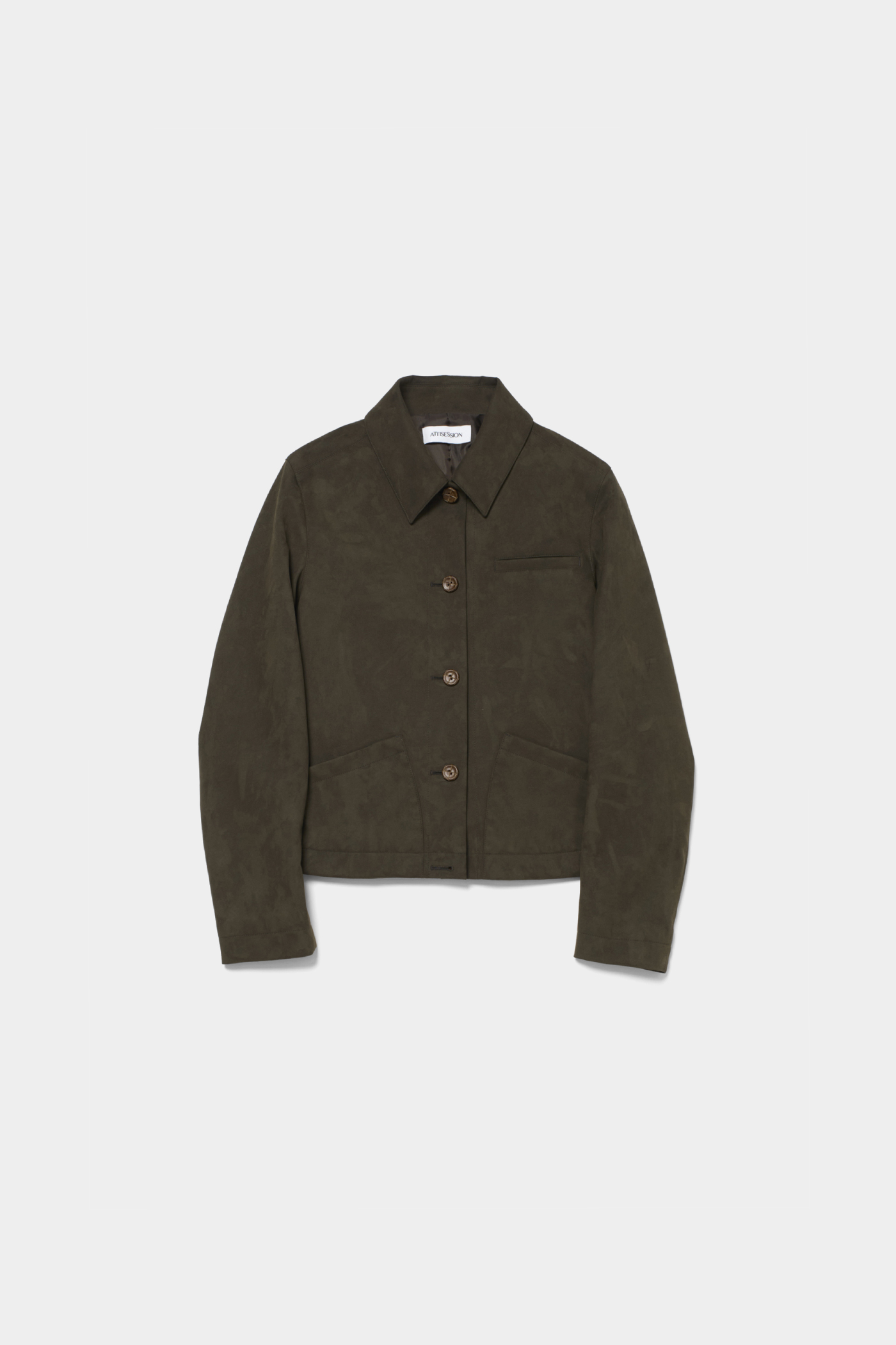 ダークな色味で、日常生活からデートまでどんなシーンでも活躍する万能なジャケット。同じ素材のスカートとセットアップで合わせるのがおすすめです。