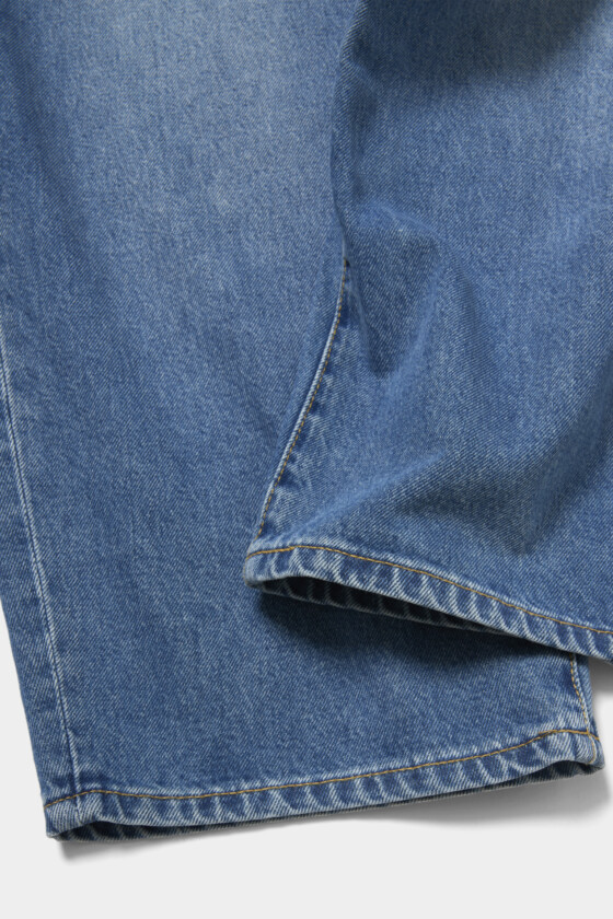 リアルなユーズド感があり、オーバーサイズのシルエットが特徴的。あえてソックスインして、ほどよい抜け感を楽しむのもおすすめ。