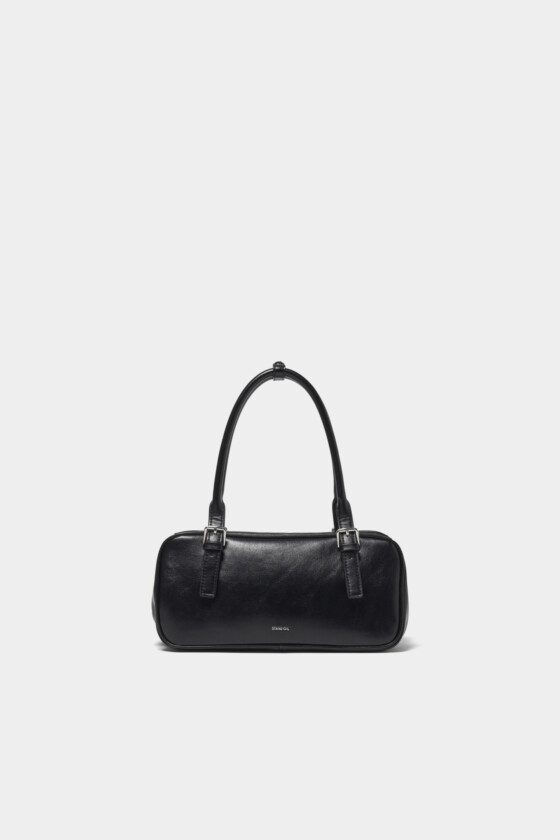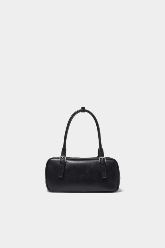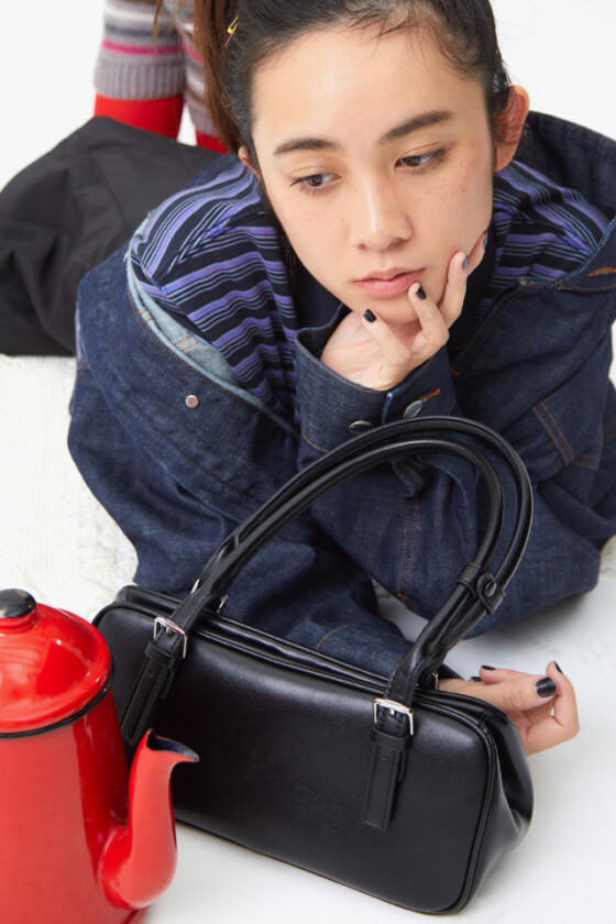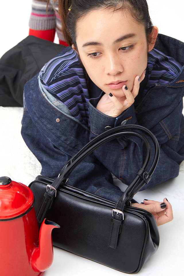 すっきりとした横長シルエットで、軽やかな印象に。光沢感のある素材が、さりげなく上品さを添えます。カジュアルなスタイルにあえて合わせて、ほどよいコントラストを。