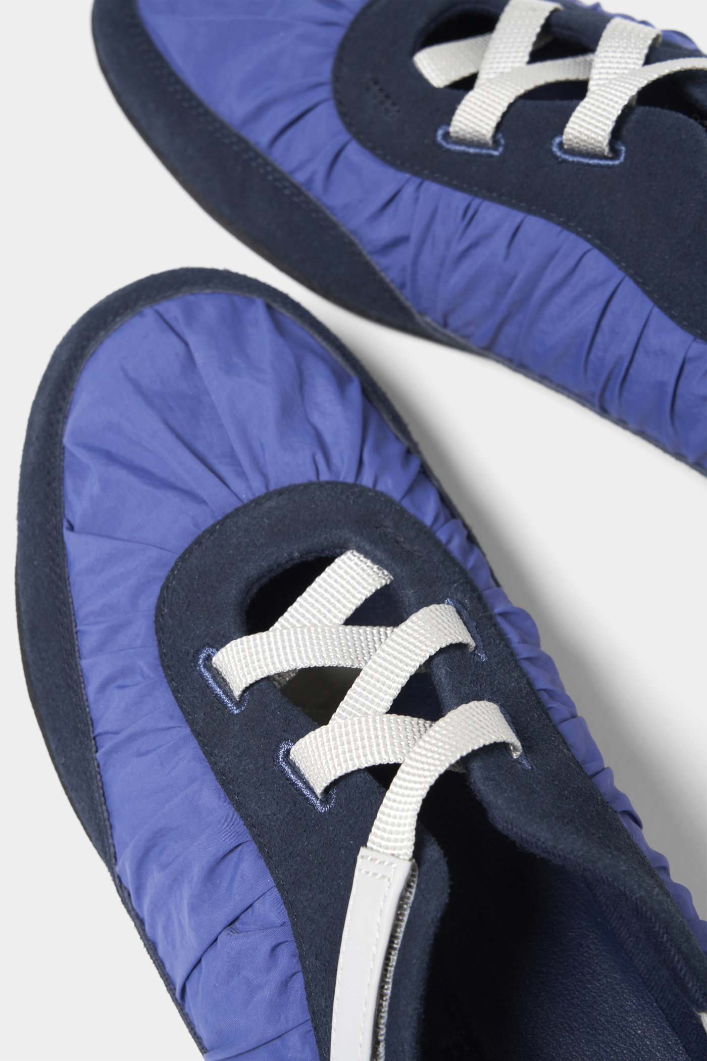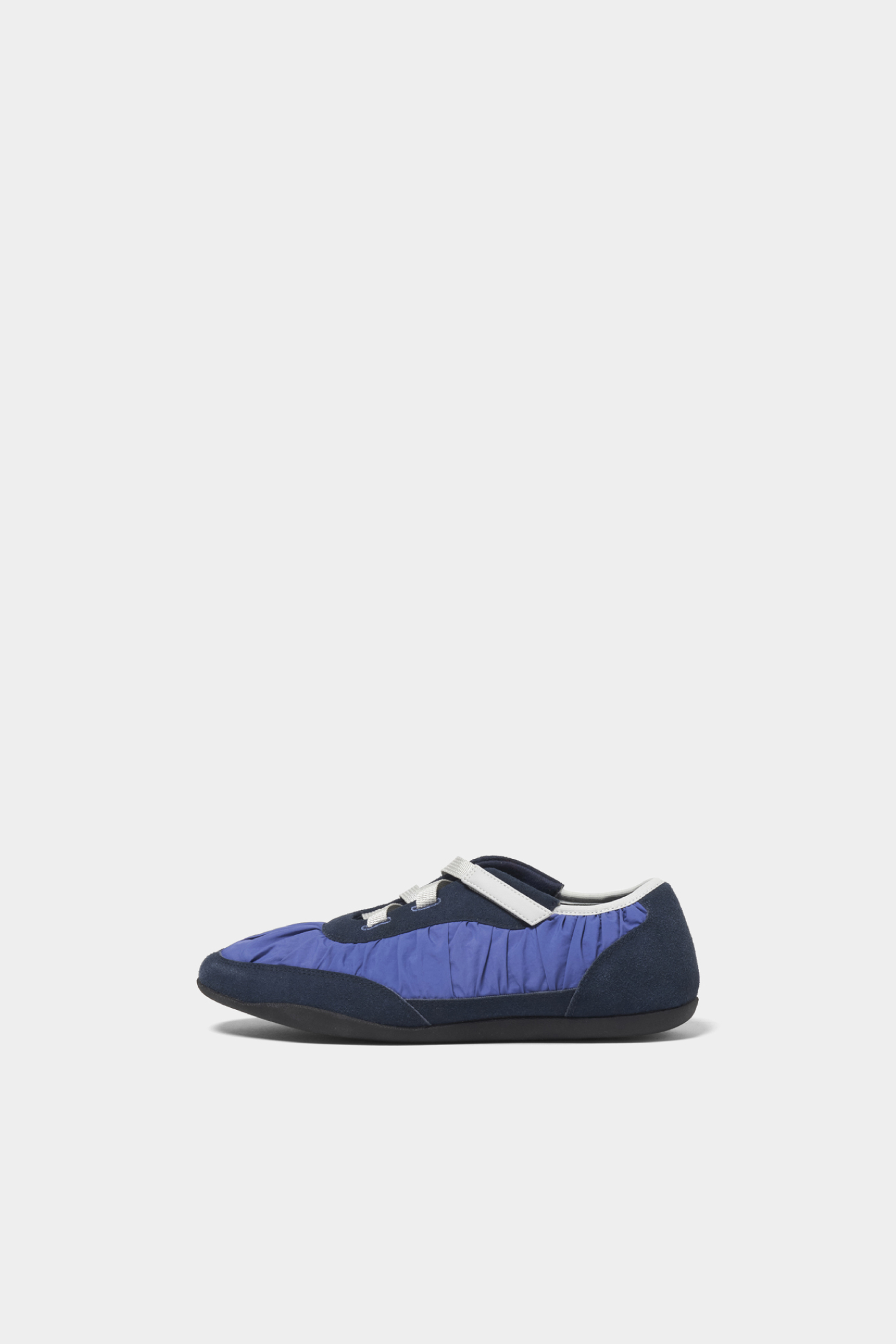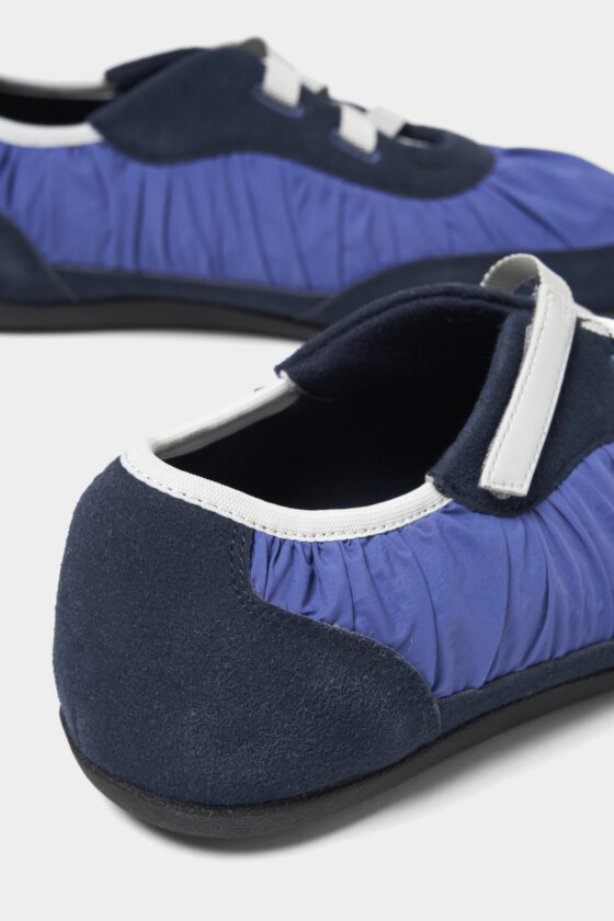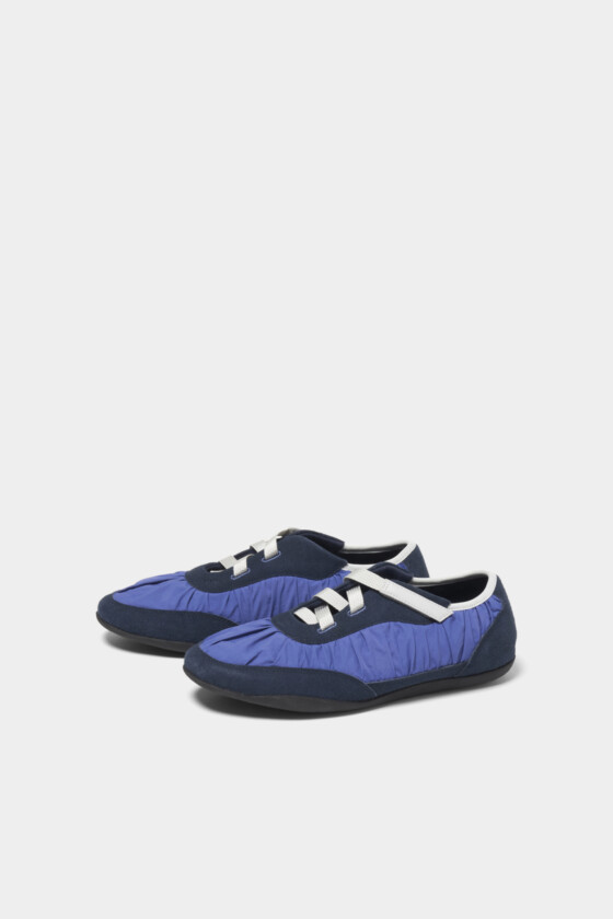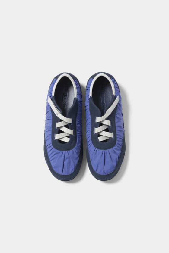 幅広いスタイリングにすっとなじむ一足。シャーリング入りの履き口は、紐を解かずに着脱できる仕様に。ミニマルなフォルムで、バレエシューズのような軽やかな抜け感をプラス。