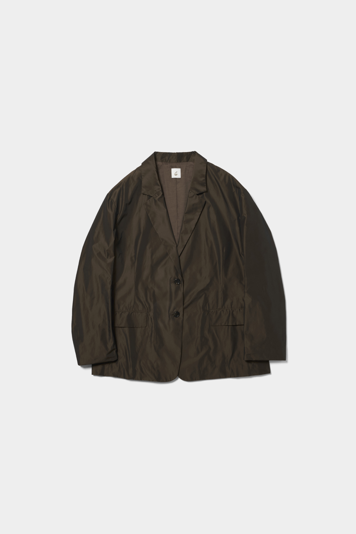 ジャケットは好きなんですけど、どうしてもブラックを選びがちで、こういうブラウン系の色味は自分ではあまり手に取らないですね。しかも素材に少しシャカっとした軽さと光沢があって、ブラウンといっても単純な茶色じゃなく、ほんのりグリーンっぽさも感じる不思議な色味なのが面白いなと思いました。今ちょうど髪色が暖色寄りなので、着てみたら意外と今の自分にしっくりきたんです。(21歳/モデル/瑚雪)