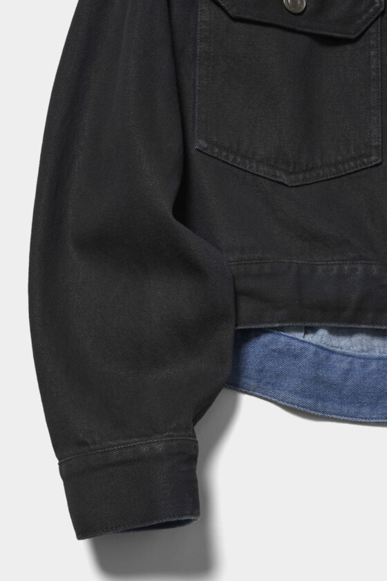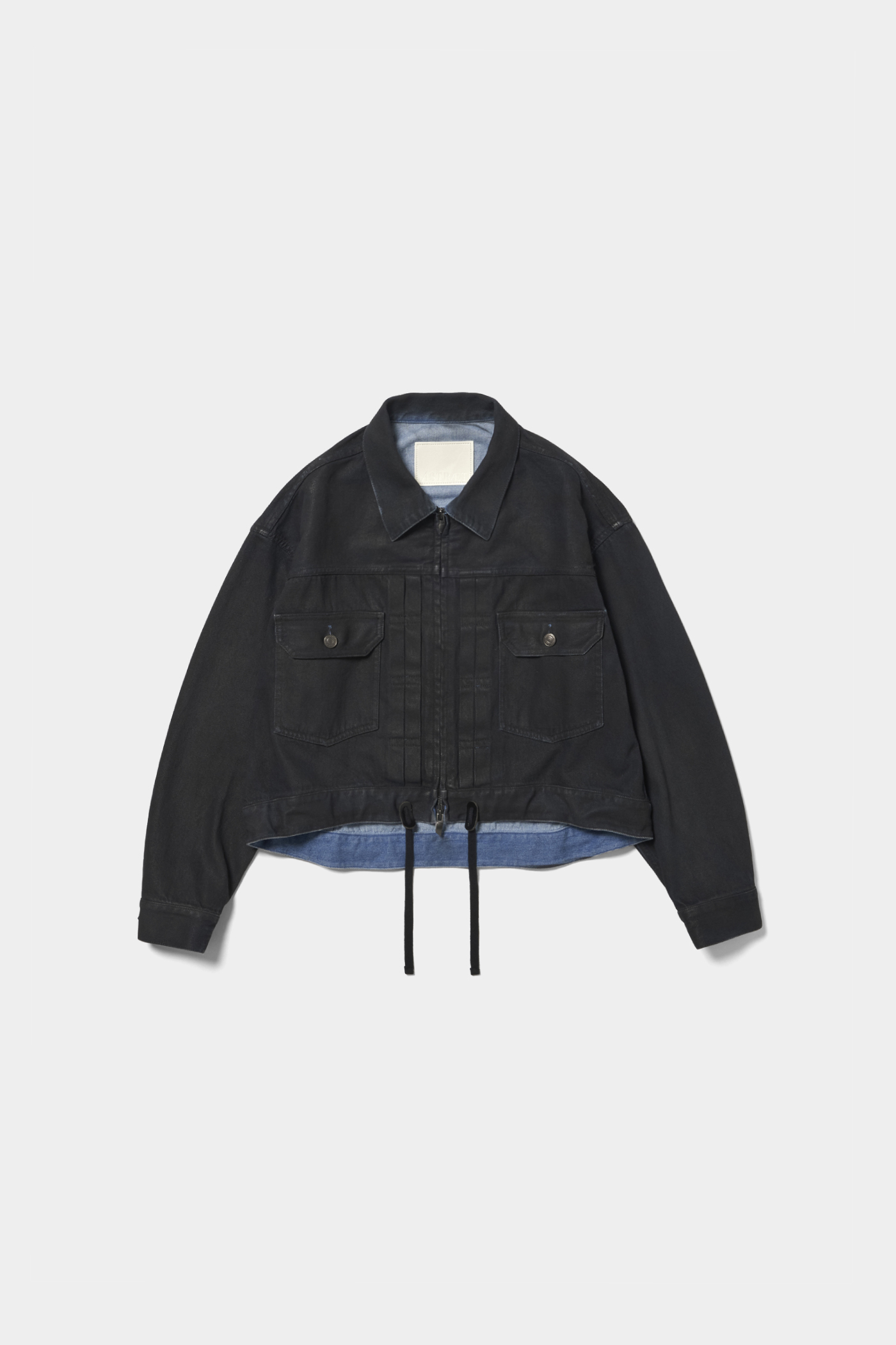 裏地の見え方がすごくきれいで、さりげないのが好きです。裾のドローコードでシルエットを変えられるのも魅力で、絞ればコンパクトに、広げればラフに着られるのがユニーク。デニムだけど意外と軽くて、内側のブルーのおかげで印象も重くなりすぎない。ファスナー仕様なのも着やすくて、硬くて億劫になる感じがないのがいいです。(18歳/文化服装学院/荒地 翠)