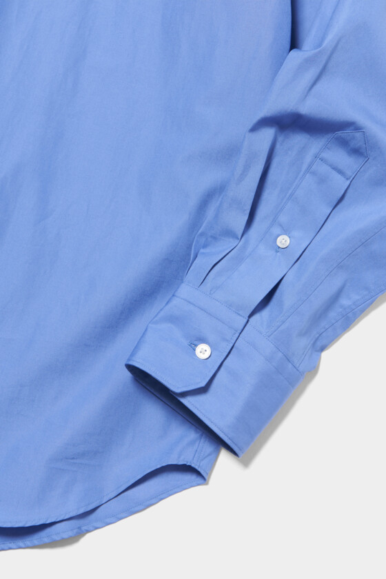 ヨーロッパ的なスタイリングはもともとすごく好きで、雑誌や写真で見ると素敵だなと思うんですけど、実は毎日のワードローブにはあまり取り入れてこなかったな、と改めて気づきました。ブルーのシャツも、ザ・ブルーという色は新鮮で、着た瞬間に気分が変わる感じがしました。(23歳/文化服装学院/フロレンシア・ドウン・ジュアン)