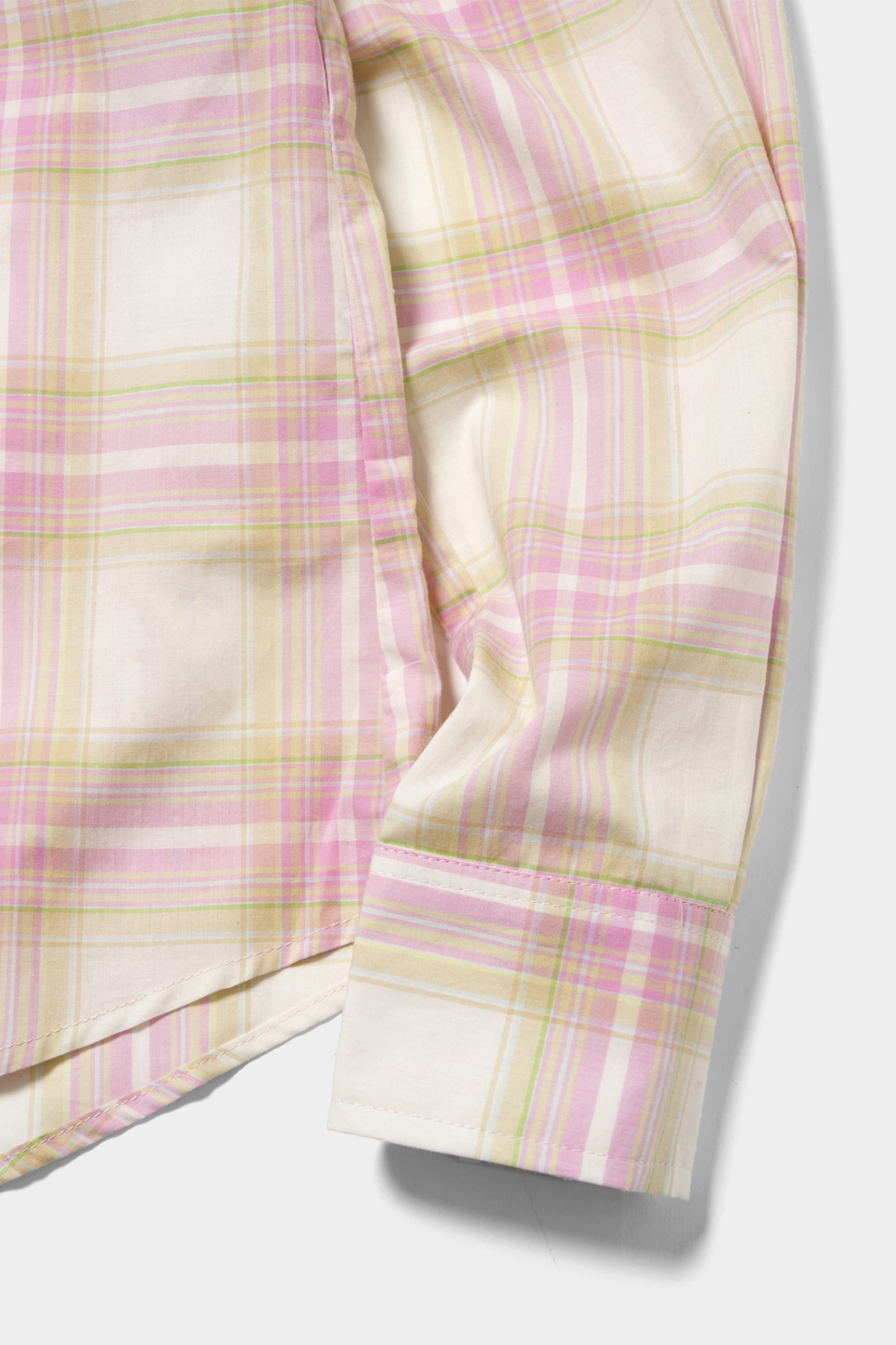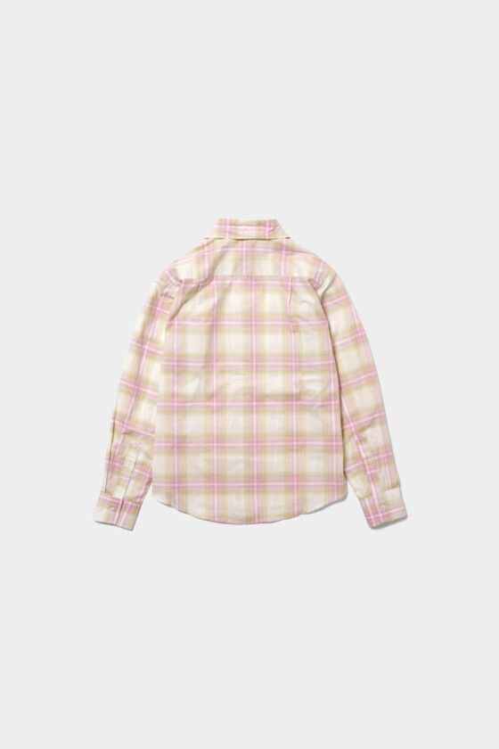 色自体はしっかり主張があるけど、シルエットがコンパクトで素材感も上品なので、甘くなりすぎないところが絶妙!全体をピンクで見せるというより、コーディネートの中でふと覗くチェックがアクセントになる、そんな使い方をしたいシャツです。(20歳/文化服装学院/咲野澄令)