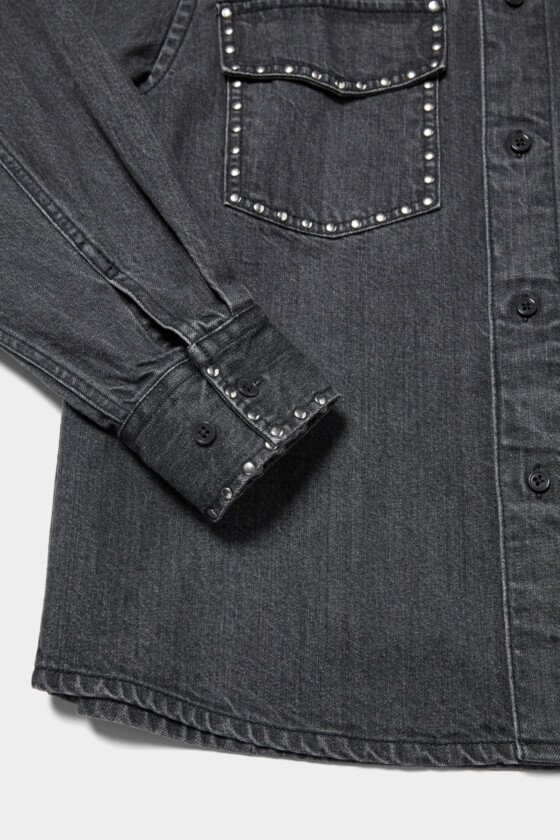 最近あまりデニムを着ていなかったんですが、ブラックに近い色味なら自分の服にもなじみそうだなと思って選びました。全体的にオーバーサイズで、スタッズが入っているけど主張しすぎないのもいい感じ。カジュアルに着るというより、あえてきれいめなアイテムと合わせてみたいです。(24歳/モデル/FUTABA)