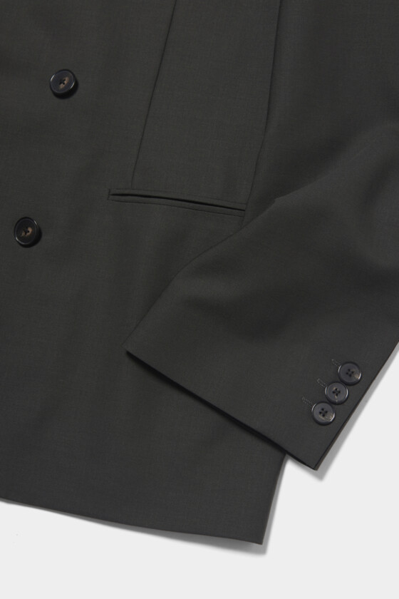クラシックなテーラードジャケットは挑戦の一着っすね。自分らしくコーディネートするなら、短い着丈のジップパーカの上から羽織って、腰パンのデニム。正直まだあんまりリアルなアイテムじゃないけど、いつか大人になったときに格好よく着られたらいいなって思います。(16歳/和光高等学校/新藤一聖)