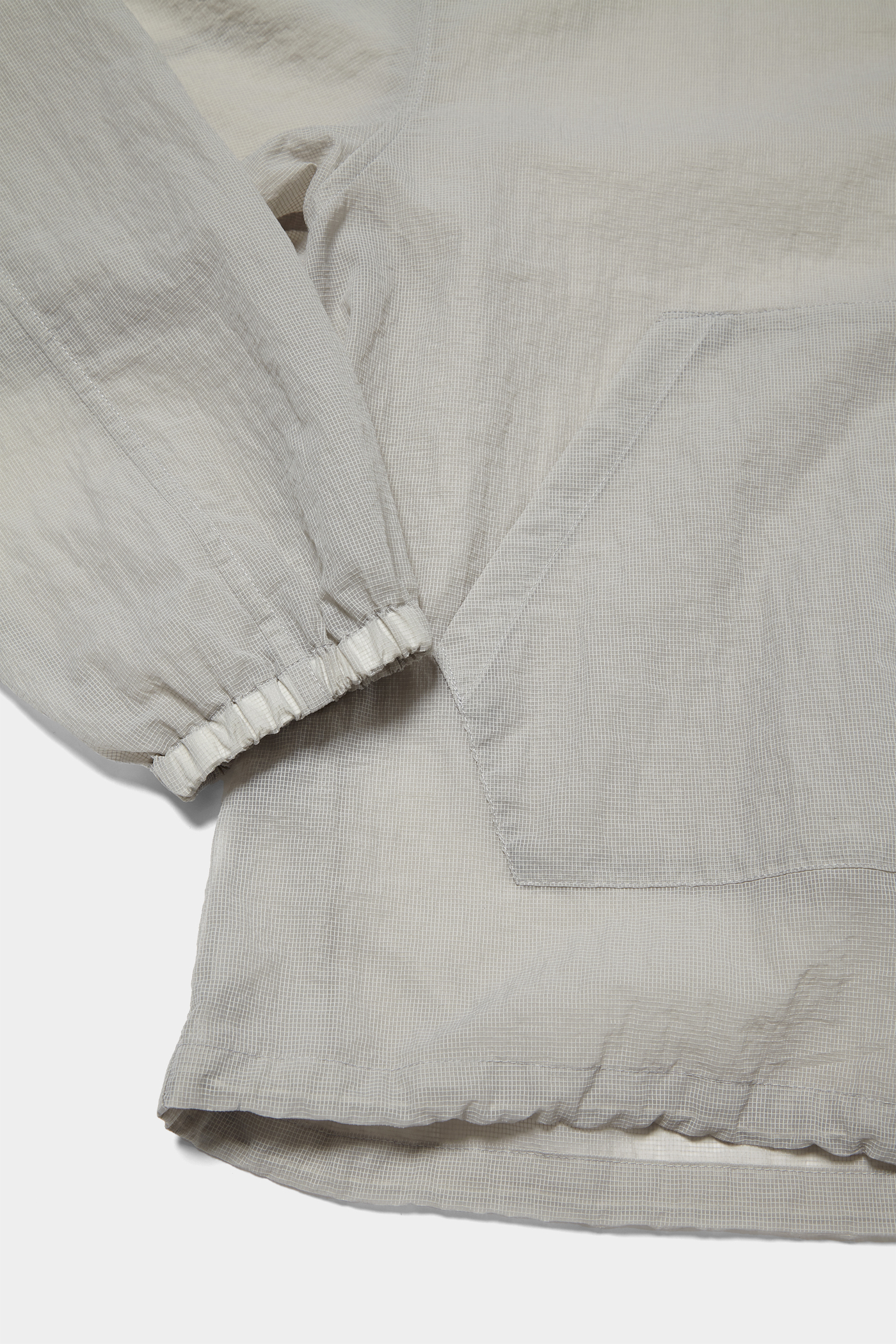 透け感のある素材がまずいいなと思いました。ニュートラルなグレーで、色味も自分の好きなトーンだったので、すっとなじんだ感じがします。羽織ってみたらシンプルにかっこよくて、丈感も長すぎず。インナーを選ばず合わせやすいし、一枚持っていればいろんなスタイリングに使えそうだなと思いました。万能で、気負わず着られるところも魅力です。(23歳/大学生/小林慧太)