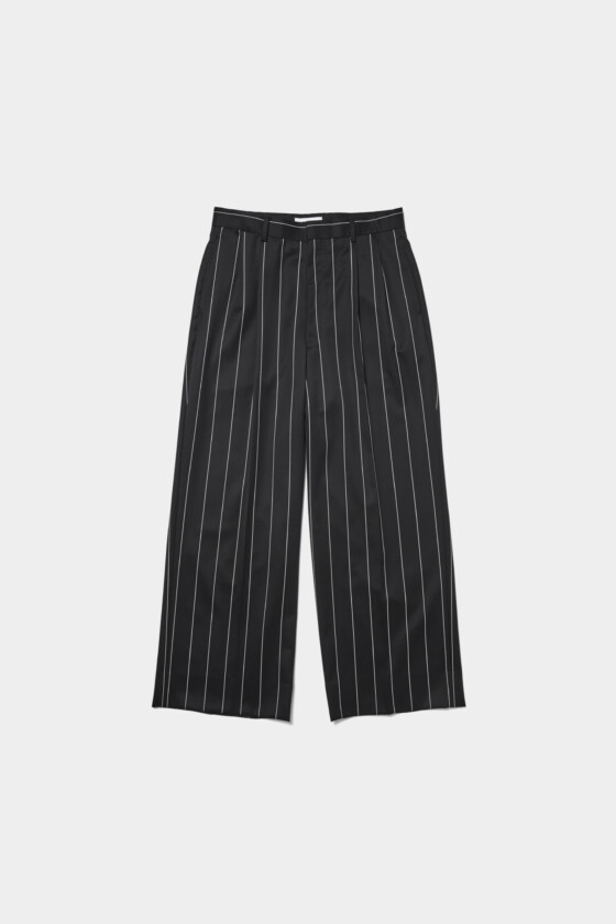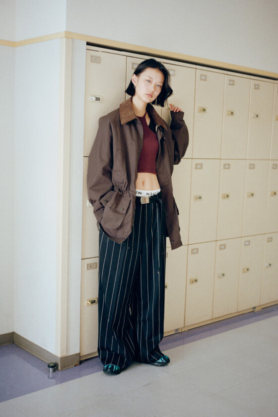 まずストライプがかわいいなと思いました。細すぎない、太めのストライプだから存在感があって、遠くから見ても印象に残るのがいい。いつもはデニムを穿くことが多いんですけど、こういうスラックスだとスタイリングの雰囲気も変えられるし、新鮮かも。きれいめだけど堅すぎず、ほどよく遊びが効いている感じがして、これからも取り入れたい一本だなと思いました。(20歳/ダンサー/島崎怜音)