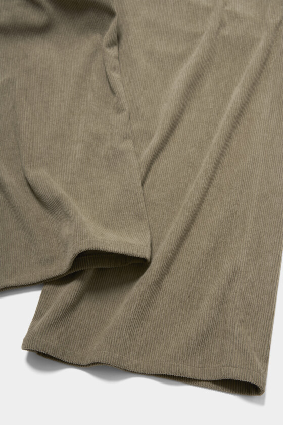 ストレスがなくて、すごく穿きやすい。シルエットもストンと落ちる感じで、イージーパンツみたいに気軽なのに、ほどよい光沢があるからラフすぎないのがいいなと思いました。ワイドだけど広がりすぎず、ストレートできれいに見えるので、合わせ方次第でカジュアルにも少しきれいめにも振れるのも魅力。(20歳/文化学園大学、クリエイティブアーティスト/平野 裕大)