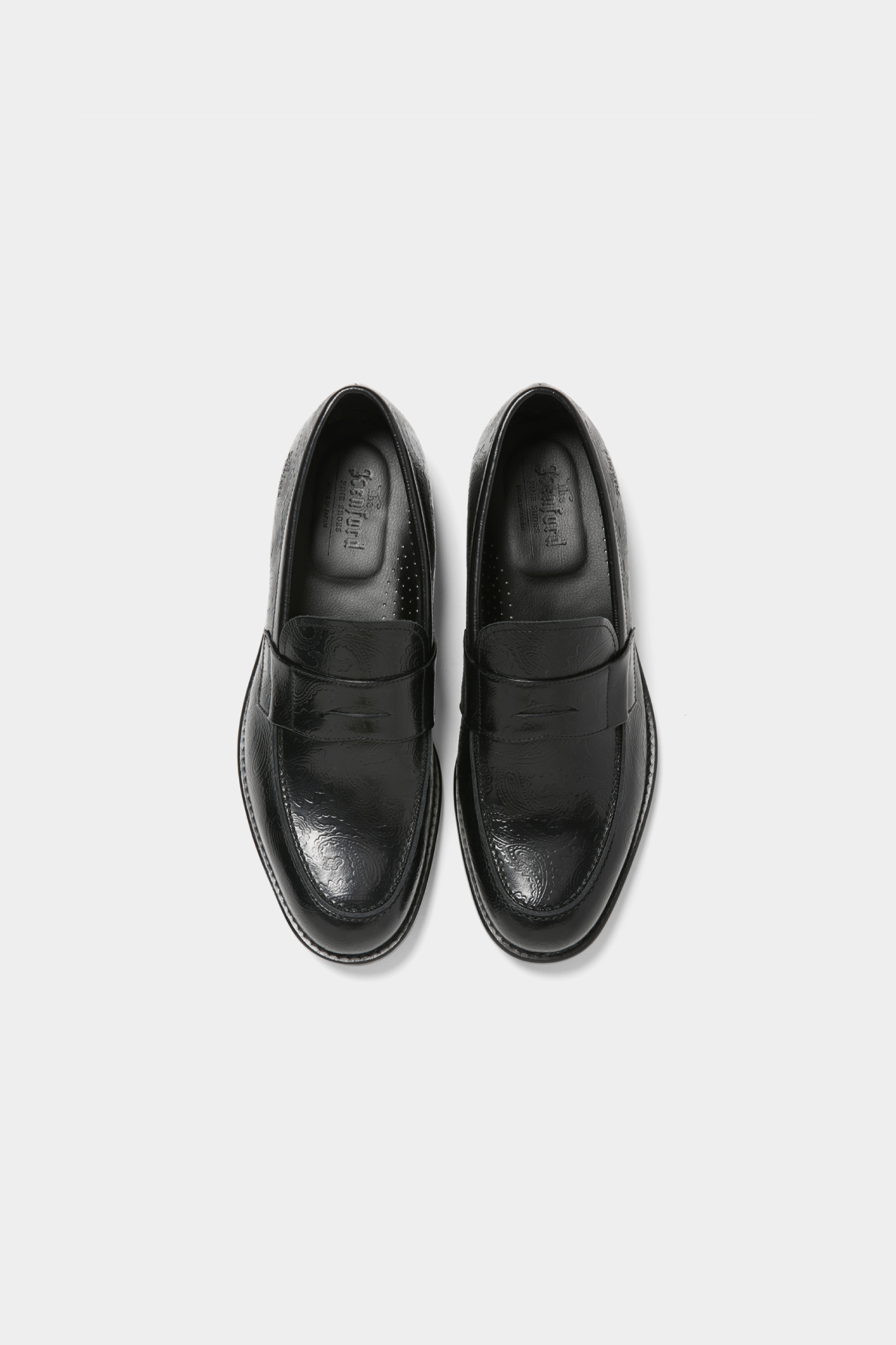 足元からコーディネートを考えることが多く、今日はこの靴を履きたいからこの服、という選び方をします。スニーカー派だけど、海外のストリートスナップでローファーを履きこなす姿に憧れていて、ずっと探していました。一見すると黒のローファーなのに、光の当たり方で浮かぶペイズリー柄がかわいい。(20歳/ダンサー/島崎怜音)