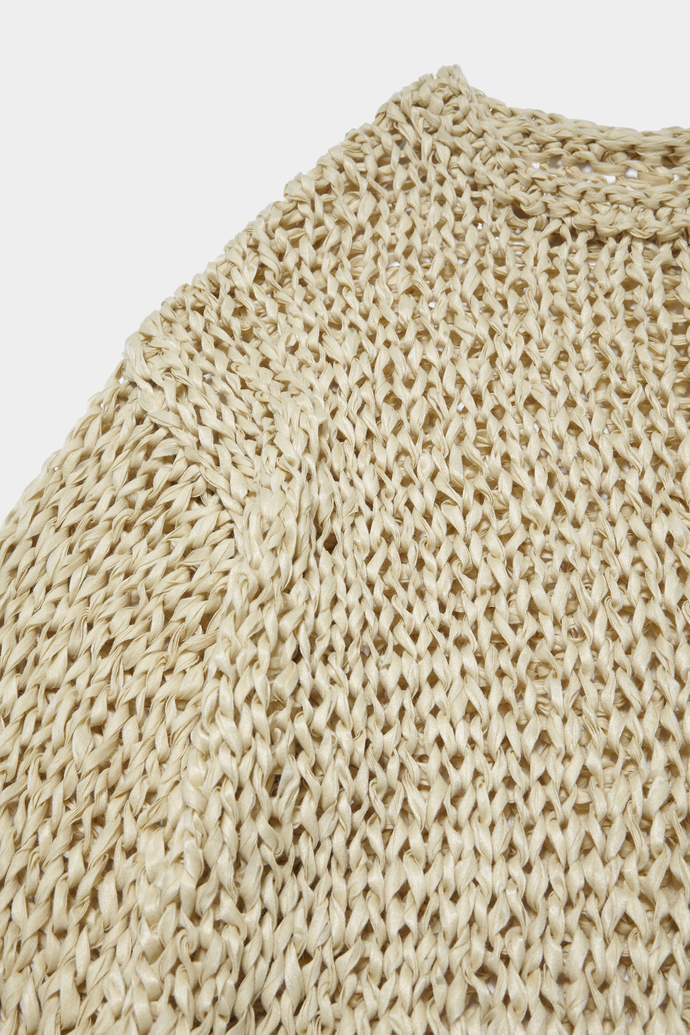 編み目の大きなニットは、合わせるインナー次第で雰囲気が変わるところが魅力。オーバーサイズのシルエットなので、ロングスカートと合わせた着こなしも気に入っています。ざっくりとしたローゲージ編みが春先の装いを新鮮に見せてくれて、軽やかな着心地なのも嬉しいポイント。フェミニンにもモードにも振れるので、スタイリング次第で幅広く楽しめそう!