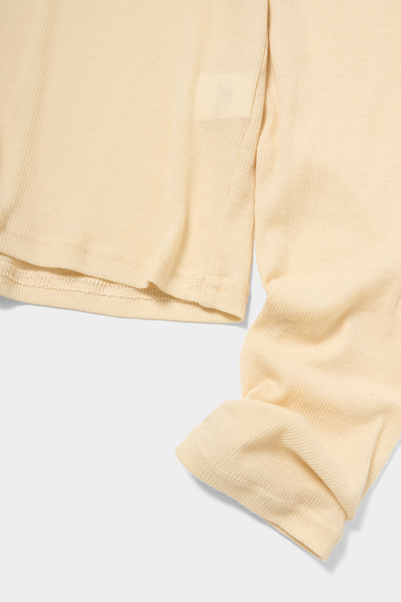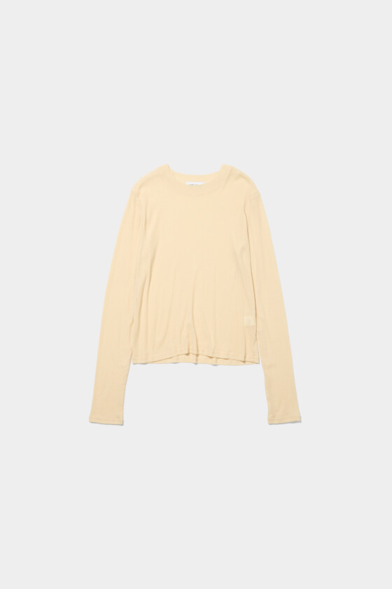 ソフトなカラーリングと薄手の素材感が魅力で、レイヤードありきで楽しみたい一着。上から半袖トップスやベストを重ねることで、スタイリングに奥行きが生まれます。軽やかな素材だからこそ、重ね着してもバランスが取りやすく、季節の変わり目にも活躍すること間違いなし!